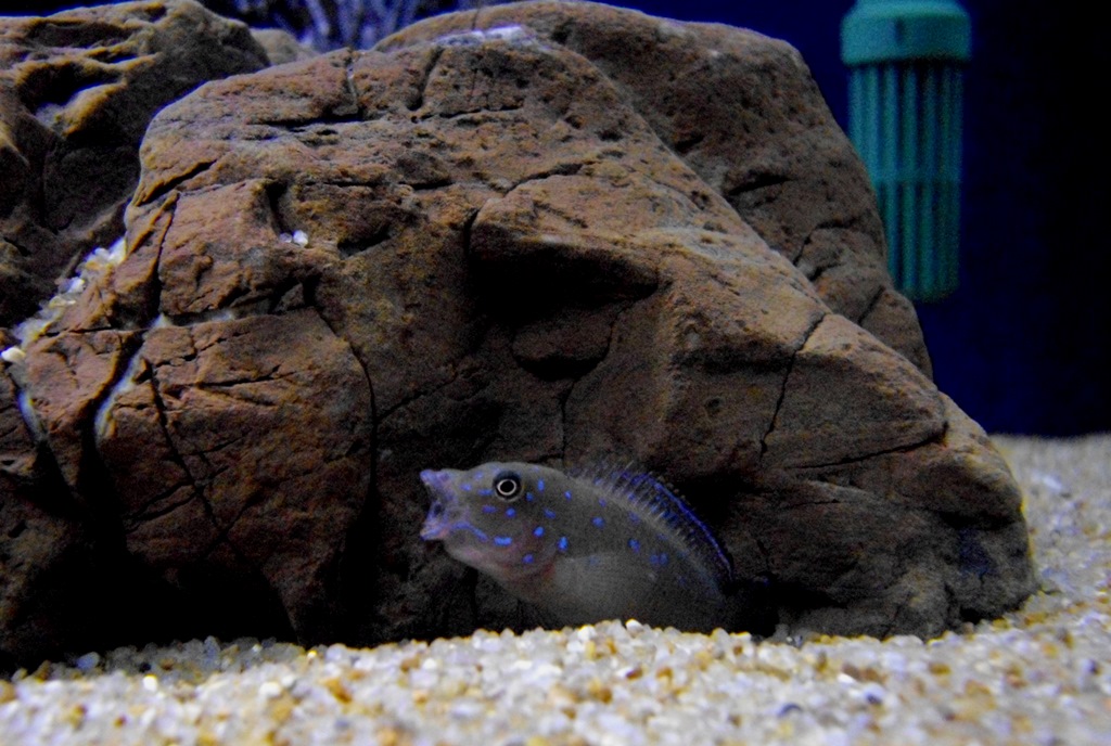 А мы,Paracyprichromis nigripinnis "blue neon",не только брюхом к верху,а даже вниз головой с полным ртом))