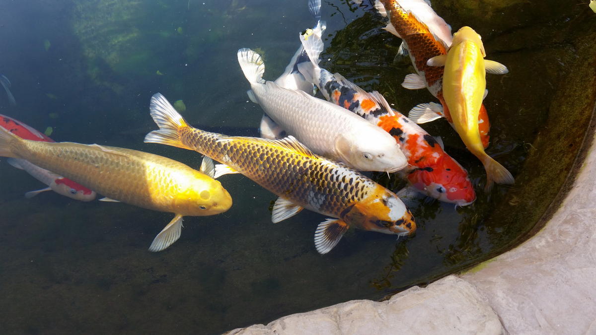Запущены 3 маленькие кои. Наверное это получился более-менее нормальный и бюджетный прудик, который жил. Баланс восстановился