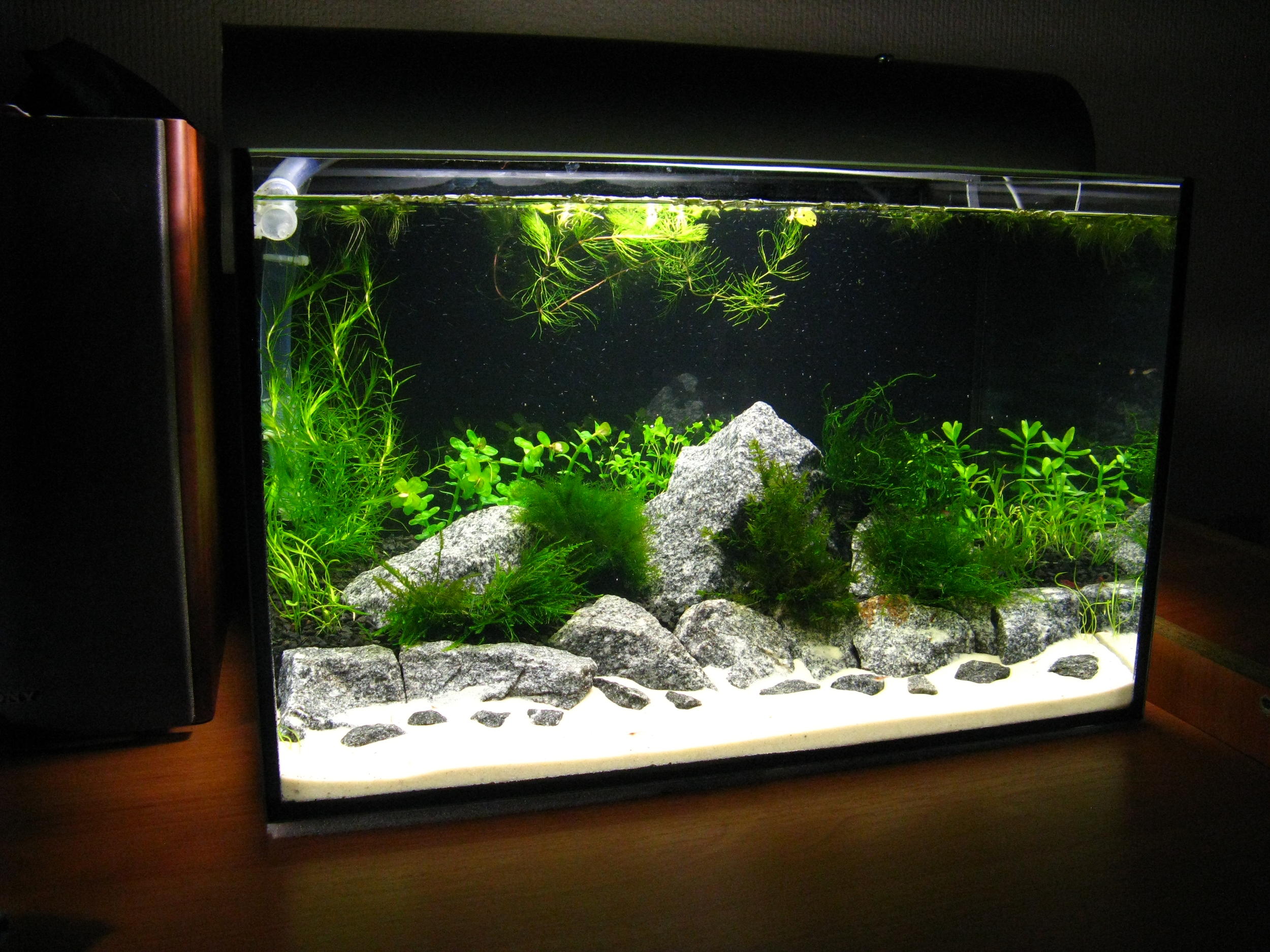 Аквариум не будет оснащён системой СО2. Для этого я и выбрал "медленные" растения. Удобрять буду раз в неделю, потом буду смотреть по внешнему виду растений. Останется подобрать длину светового дня.