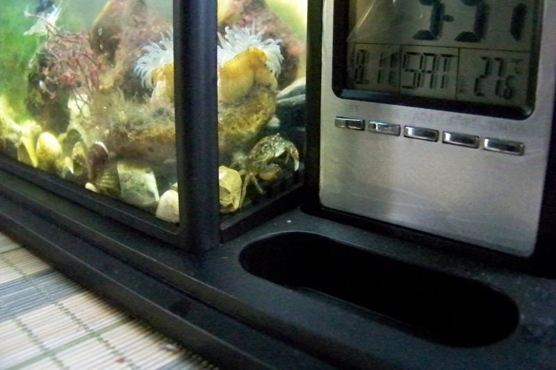 Моему Ресану 4 года. Залита вода из Черного моря. Обитатели: крабы, креветки-палемоны, бычки, морские собачки, монодактилы, селенотоки, кефаль, из живородок - молли (фото с телефона).