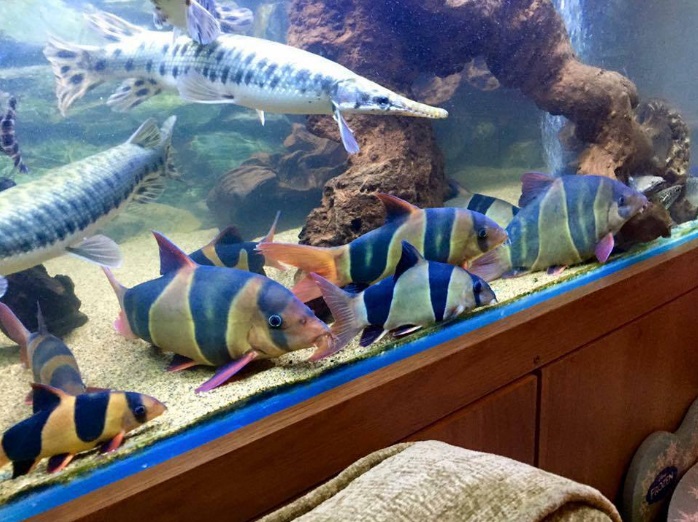 На фото ниже аквариумные монстры боции-клоуны . Да и лягушечка не слабая , я бы такую вместо кота держал , ее мышами кормить можно .