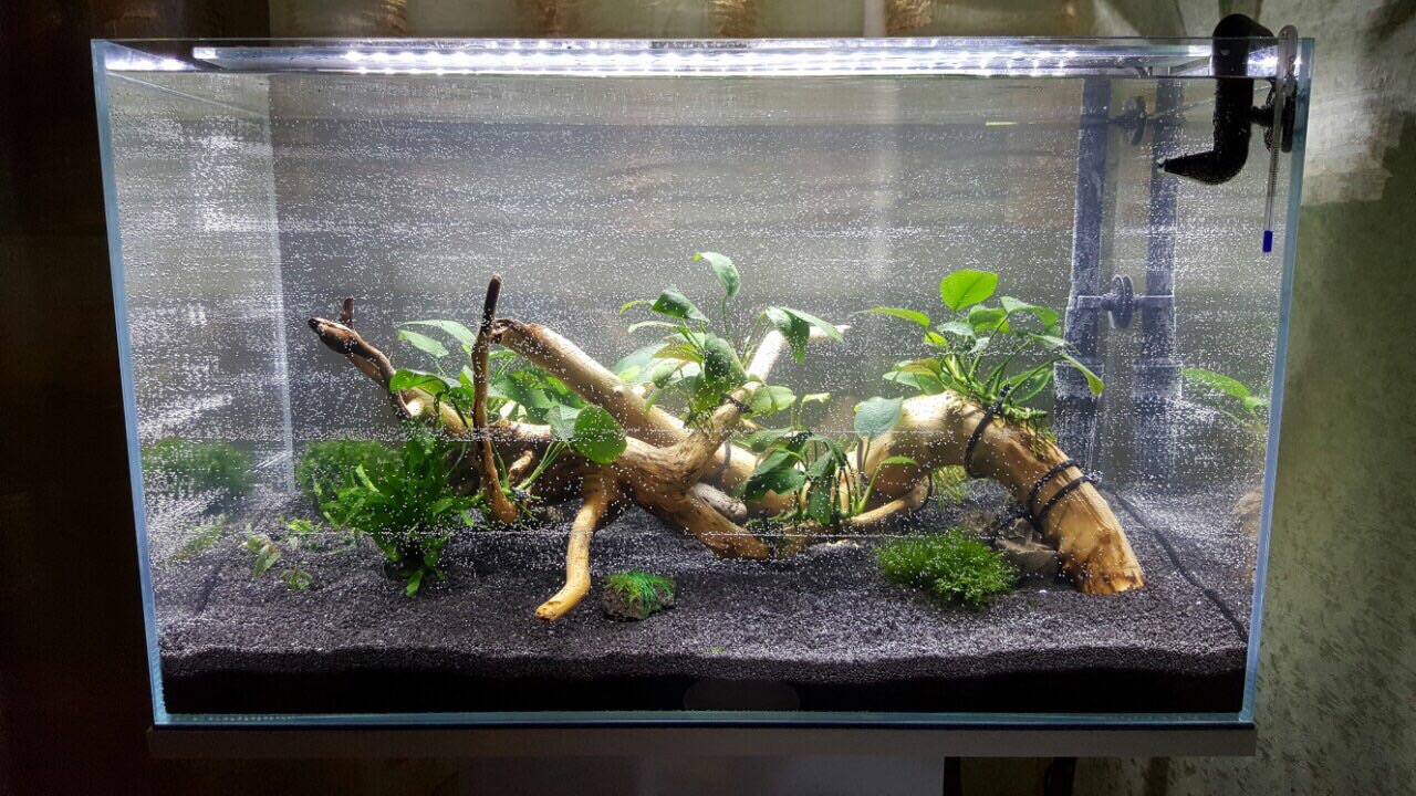 Под дату поставки было решено заказать и все остальное, что может понадобиться для запуска - фильтр, грунт, растения, коряги и прочие ништяки. Зная все минуса этой банки, решил делать анубиасятник с корягами. Грунт, ввиду все тех же минусов, а именно УГ свет, выбрал белый кварц от деннерле. Фильтр хотел попробовать всунуть Eheim Liberty 75, инфы о том, подходит ли он в едж не нашел нигде.