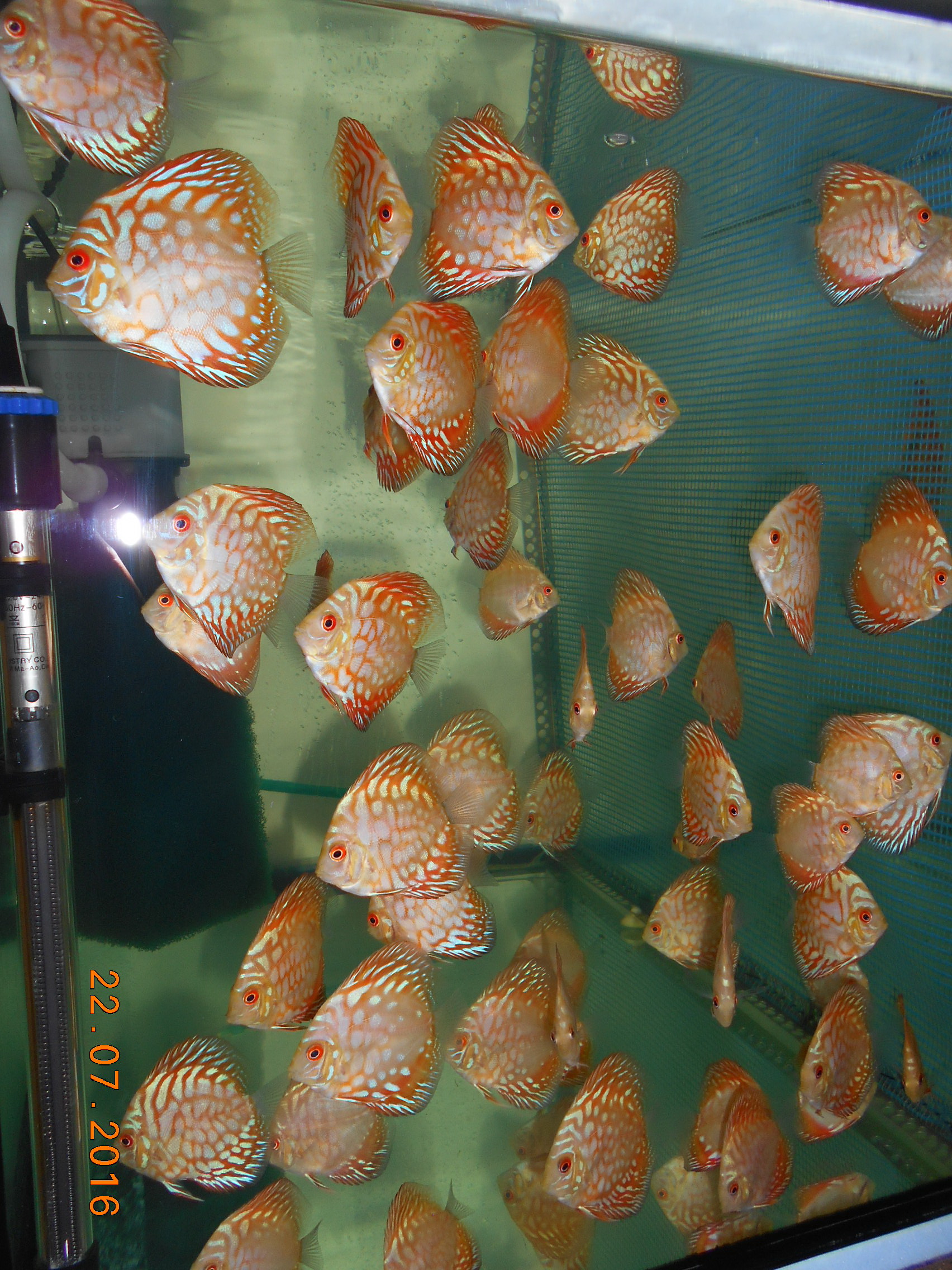 Есть на продажу дискус в размере 5-7см, пока не полностью окрашен, по цене 100грн\шт, - от 10 штук по 90грн\шт, как раз для новичков, кто хочет попробовать но цена была не по карману, сказать с уверенностью какой рисунок будет во взрослом размере пока сложно, поэтому продажа таких как есть.