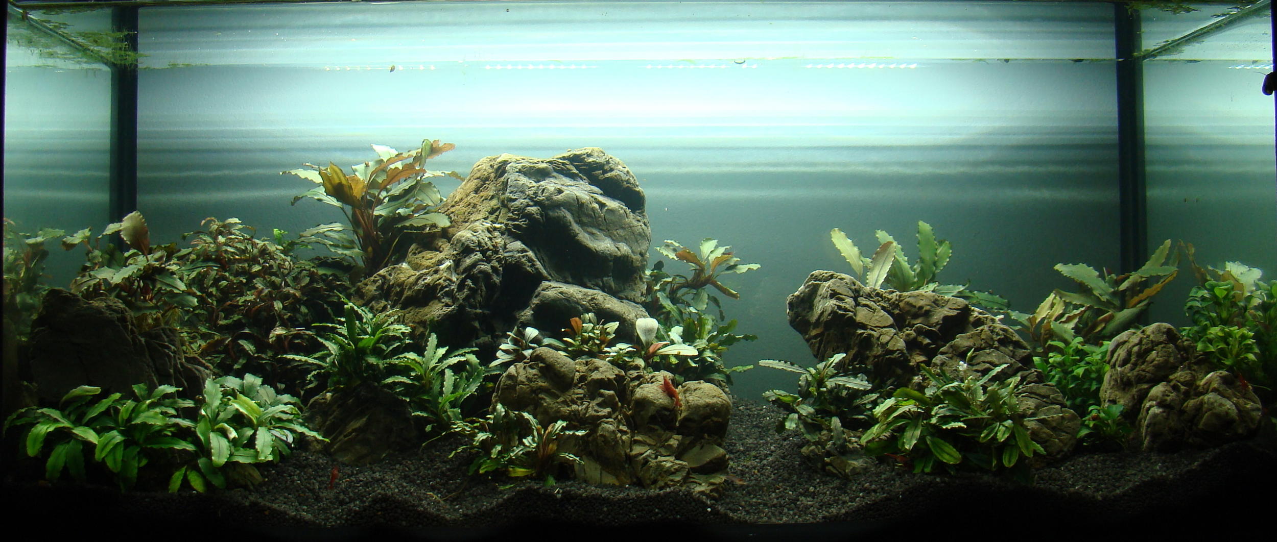 Сам по собі запуск креветочника з буцефаландрами вважаю авантюрним, бо ці рослинки повільноростучі, але гадаю, що за півроку життя акваріума буде видно їм добре, чи ні)) Поки що без фото, бо водичка мутна