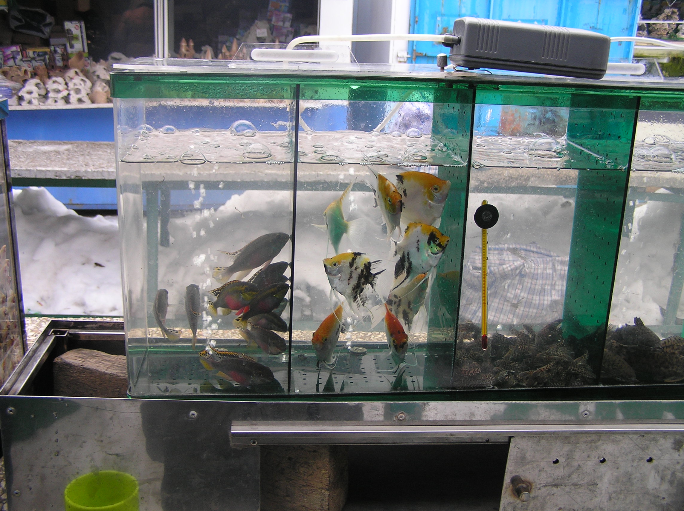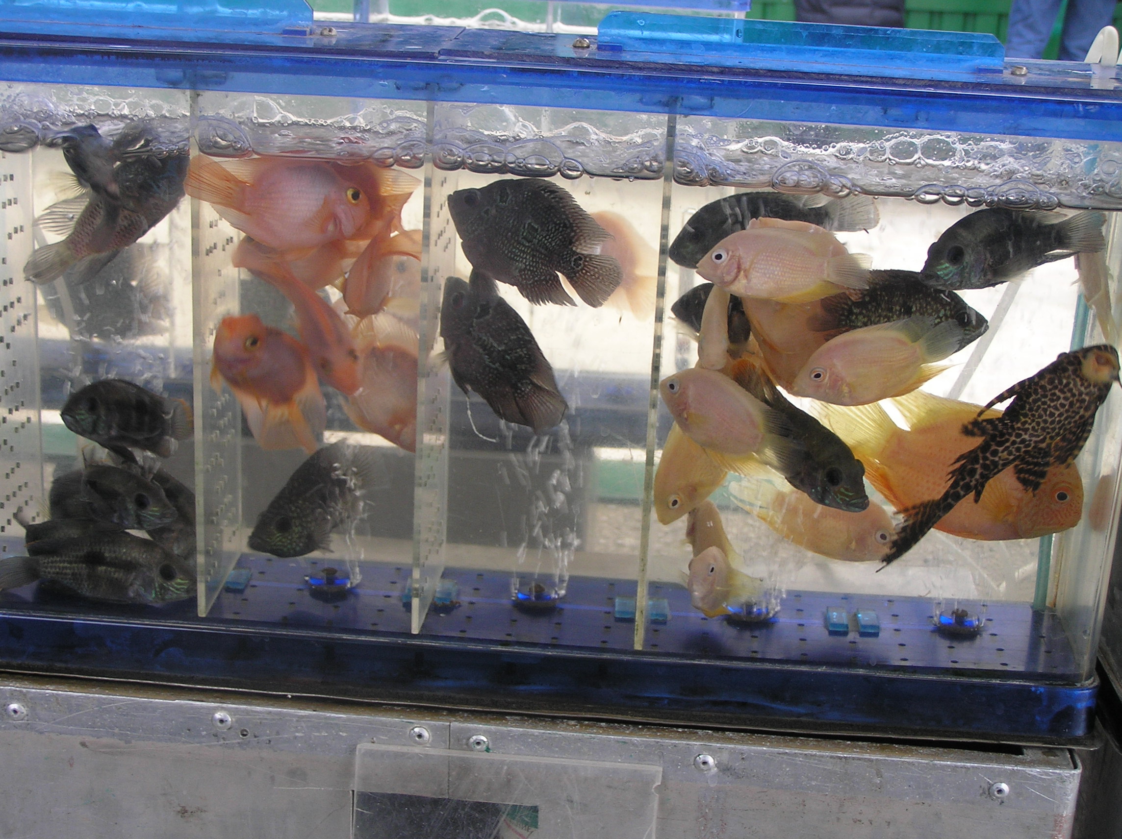 ...Итак,друзья,наступил тот трудный для меня день,когда с удовольвствием и опаской отправился на наш Харьковский Птичий рынок сделать очередной репортаж.Да,как обычно,стараюсь, хотя бы один раз в месяц показать эскизно некоторое количество имеющейся акваживности.День был хмурый,освещение не очень.В общем, простите,если что не люкс.