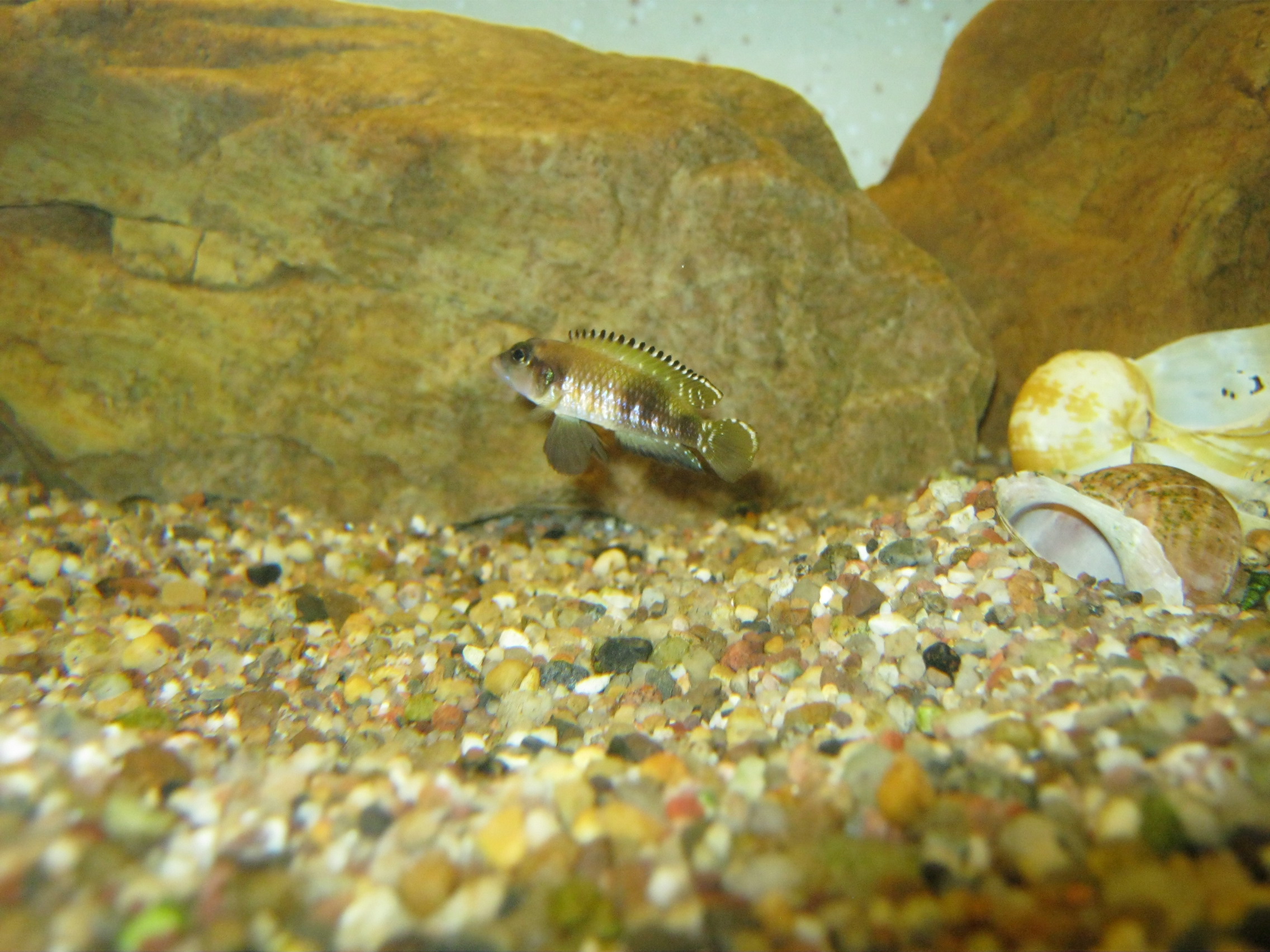 После того, как 5 малышей начали "самостоятельную" жизнь, появился на свет еще 1 специозус. Хочу отметить, что старшие братья не очень были к нему дружелюбны, честно говоря, думал прибьют его, но он оказался шустрым и вскоре тоже занял свою ракушку. Самка-мать пропала с переднего плана аквариума, стала тусить в аутсайдерской часть аквариума(на тот момент это 2/3 дна) там обитали без особых целей еще одна самка и самец.