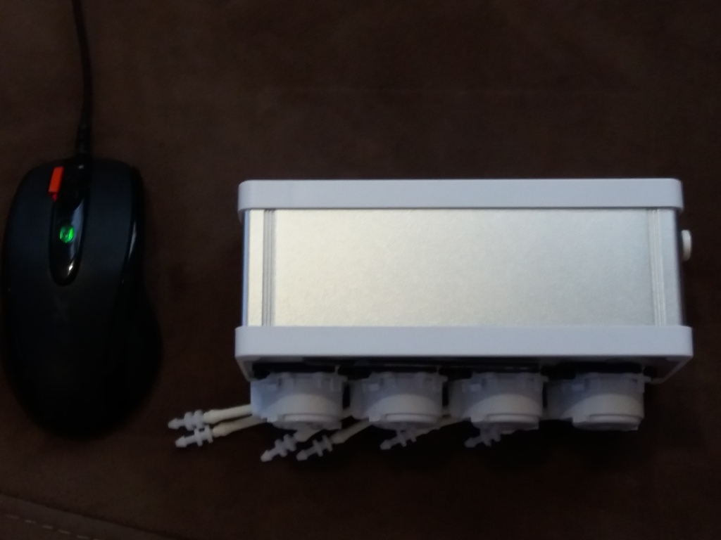 Заказал на Fish-Street.com дозатор Coral Box WF-04 WIFI Dosing Pump. Стоимость 179$. Это новая улучшенная версия Jebao DP4, главные отличия это более надежные помпы, точность дозирования, маленькии размер и конечно же управление через телефон по вайфаю. Доставка из Гон Конга 3 недели на обычную укрпочту, доставка обошлась в 2$, шара. Первые впечатления - дозирует после калибровки точно, глюков нет, управлять, менять дозу через телефон классно, и это все что мне от него надо. На фотках его размер по сравнению с мышкой.