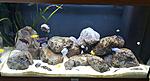 Как хорошо, что я сначал установил камни на стекло, а только потом засыпал песок - эти засранцы накопали себе пещер под/между ними  и сидят там как мурены выглядывают.