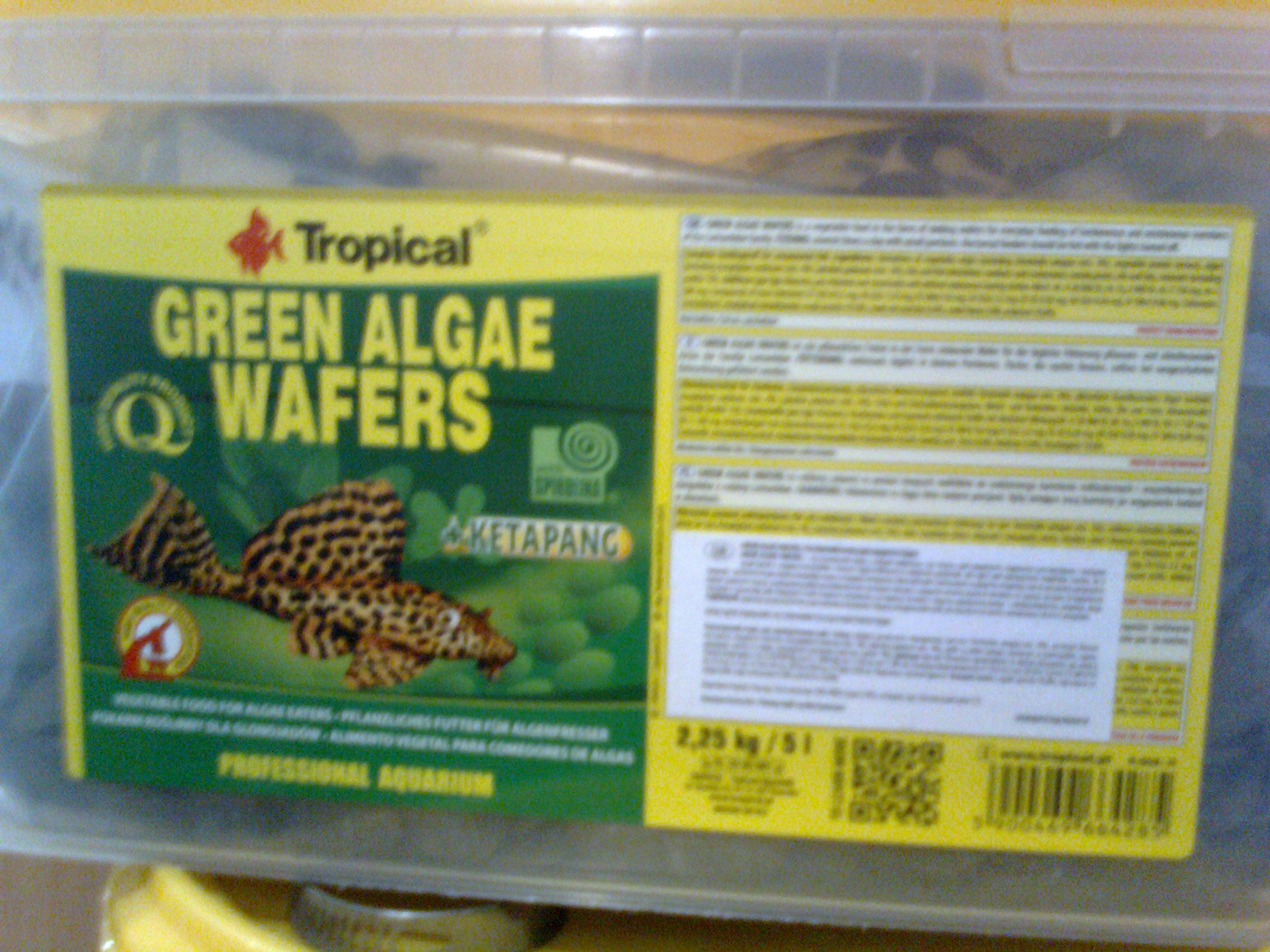 GREEN ALGAE WAFERS растительные тонущие таблетка для водорослеедов Растительный корм в виде тонущих таблеток с добавкой водорослей Spirulina platensis, предназначенный для ежедневного кормления рыб семейства Loricariidae, которые в диете требуют значительной доли компонентов растительного происхождения и водорослей. Кроме того,превосходно дополняют диету всеядных видов рыб донной зоны, а также морских и пресноводных ракообразных. GREEN ALGAE WAFERS это корм характеризующийся очень высокой гидростабильностью – впитывая воду сохраняет структуру и не разрушается, что облегчает кормление ракообразных и позволяет почти натуральным образом жировать рыбам, ротовое отверстие которых превращено в присоску, оснащенную зубами, позволяющими истирать корм с твердой поверхности.