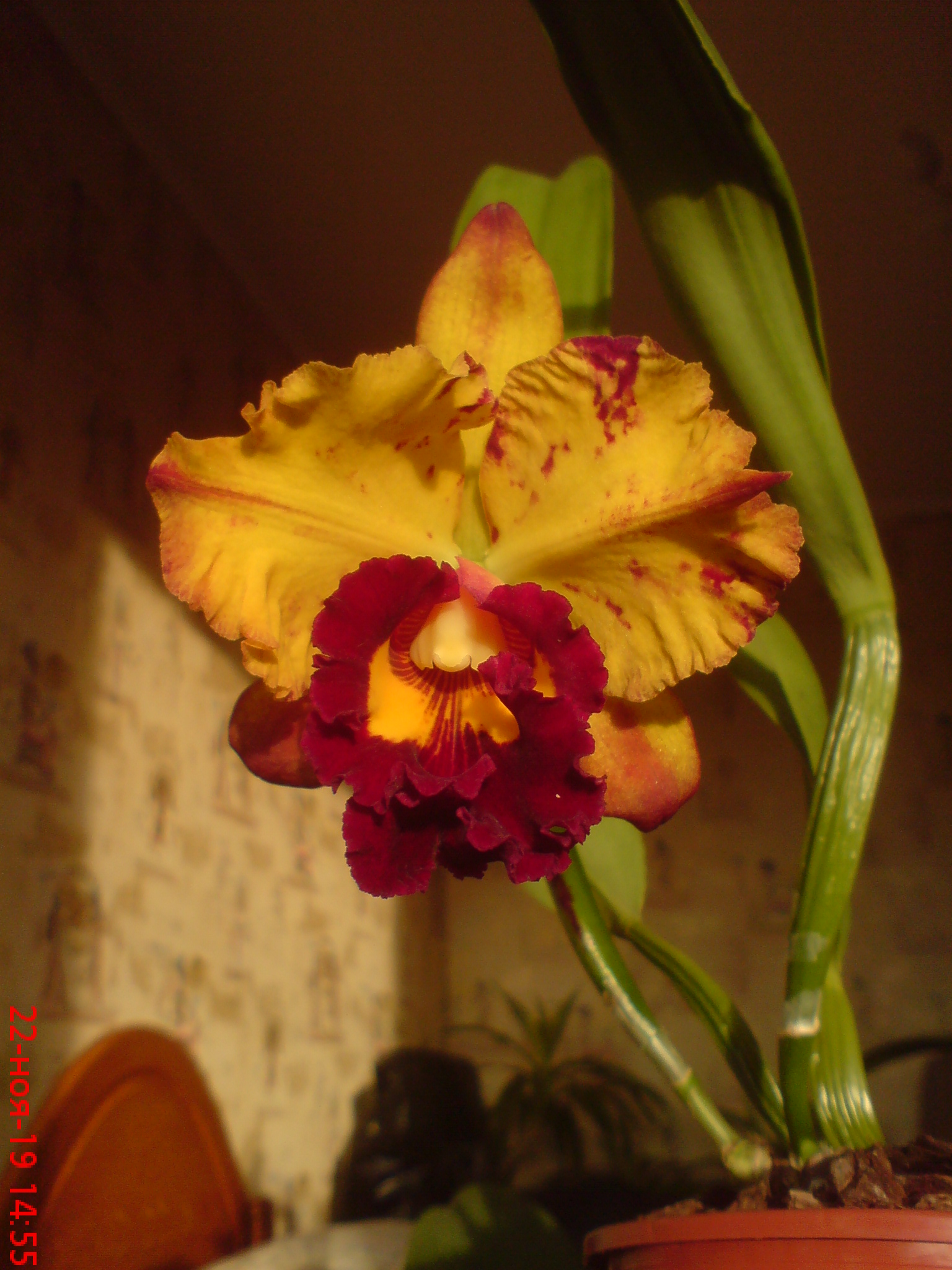 Моя Rhyncholaeliocattleya Liu's Joyance 'Leopard' (=Rhyncholaeliocattleya Chunyeah x Rhyncholaeliocattleya Tainan Gold) втрое цветение выращенной с одной бульбы. посажена 3 года и 4 месяца назад одной бульбой