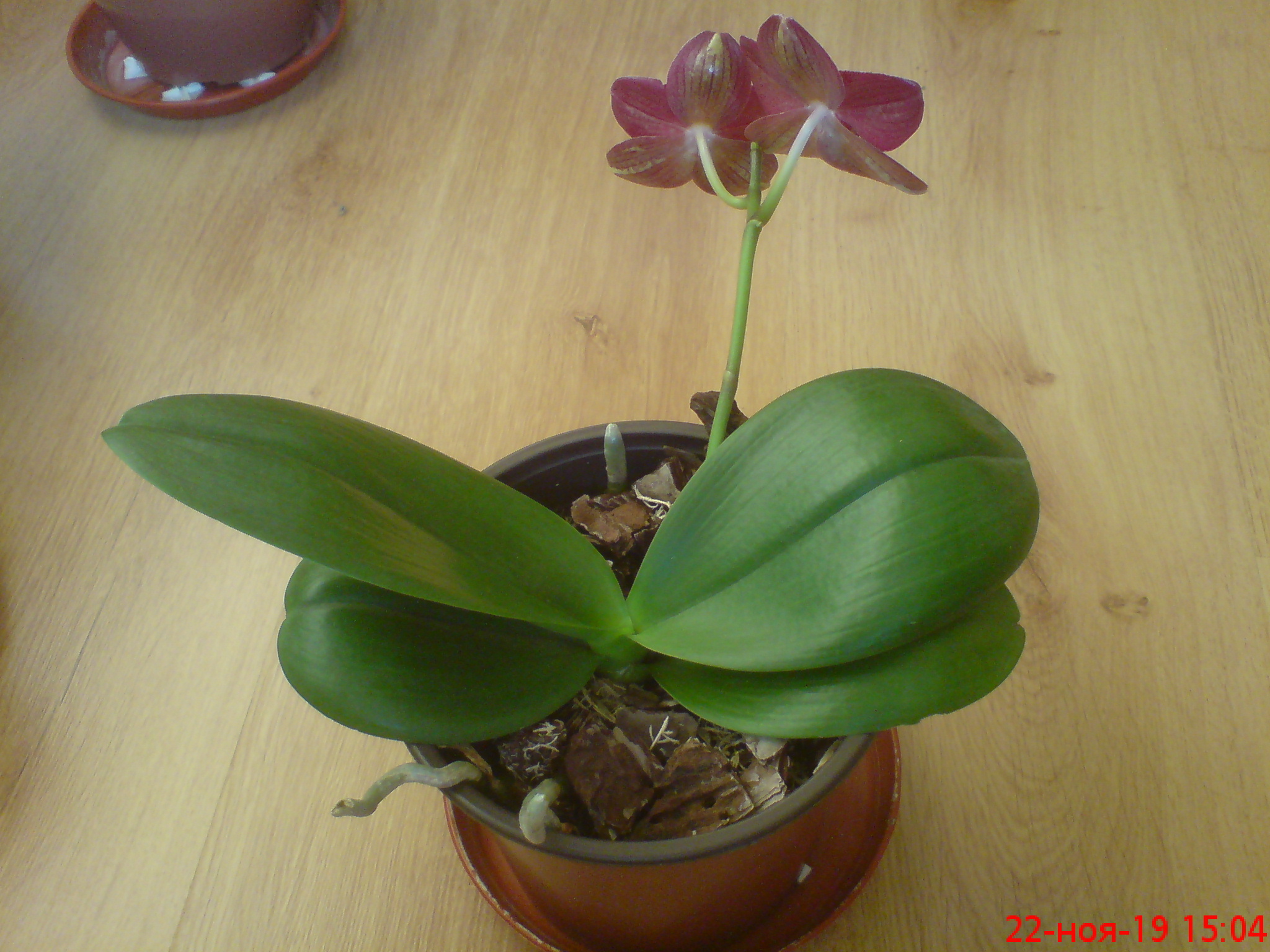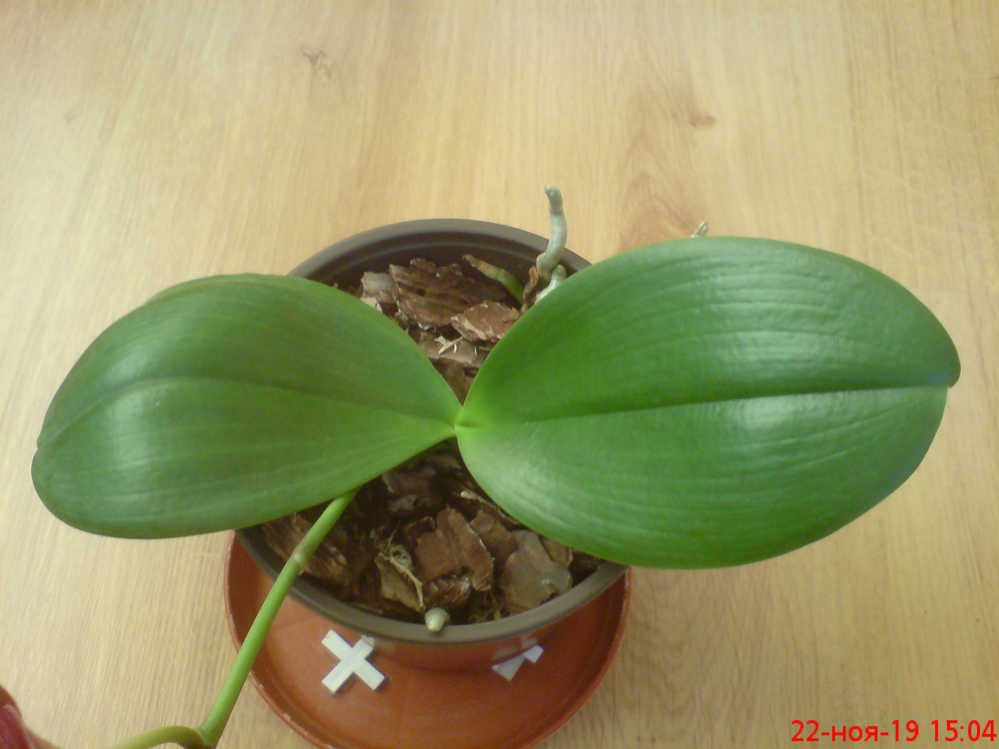 Phalaenopsis schilleriana практически взрослое растение выращенное с размера лита в 5 см до 35 см. за 2 года и 8 месяцев . пересадка в чистую кору в горшок на 2,4 литра.