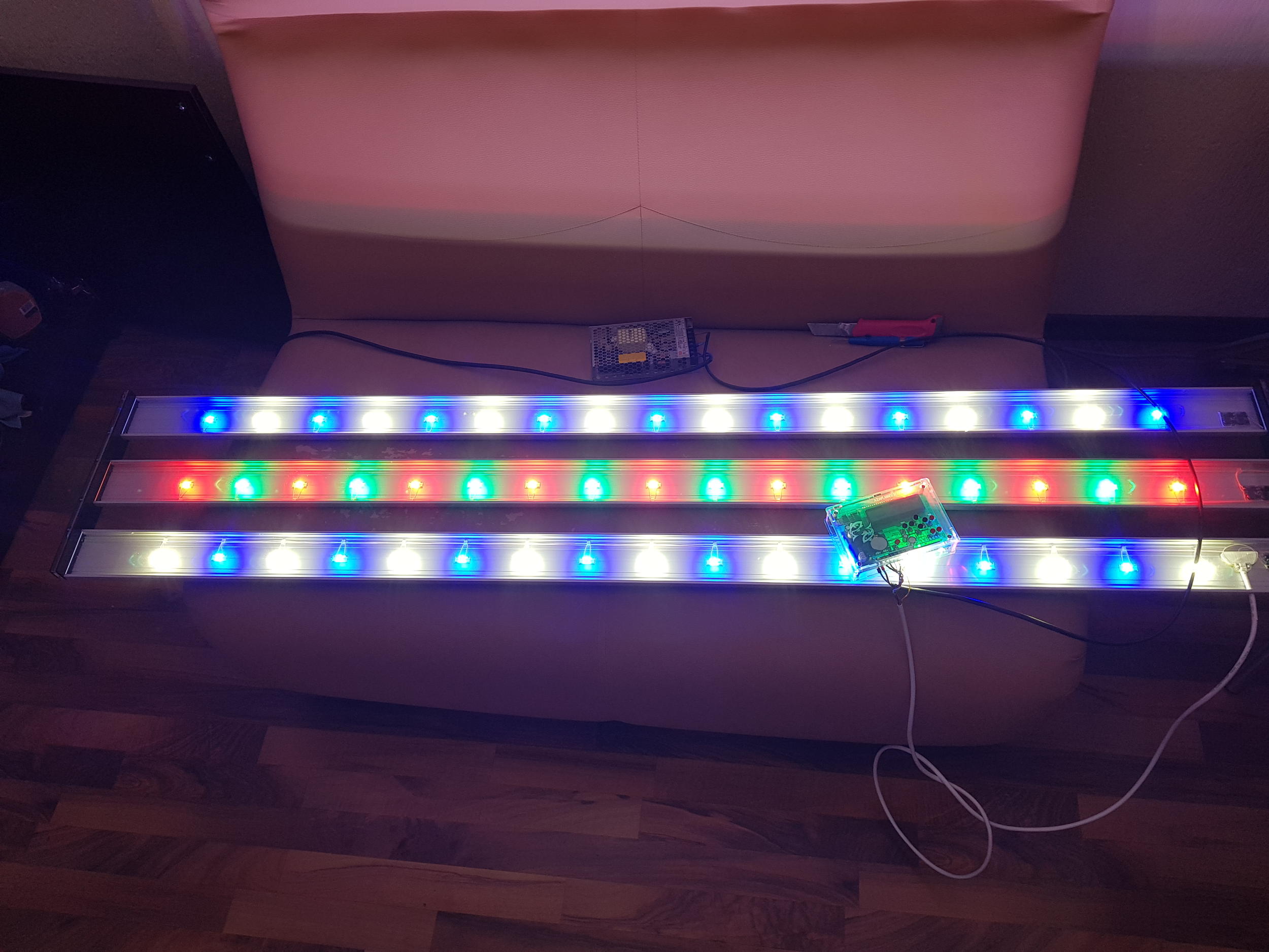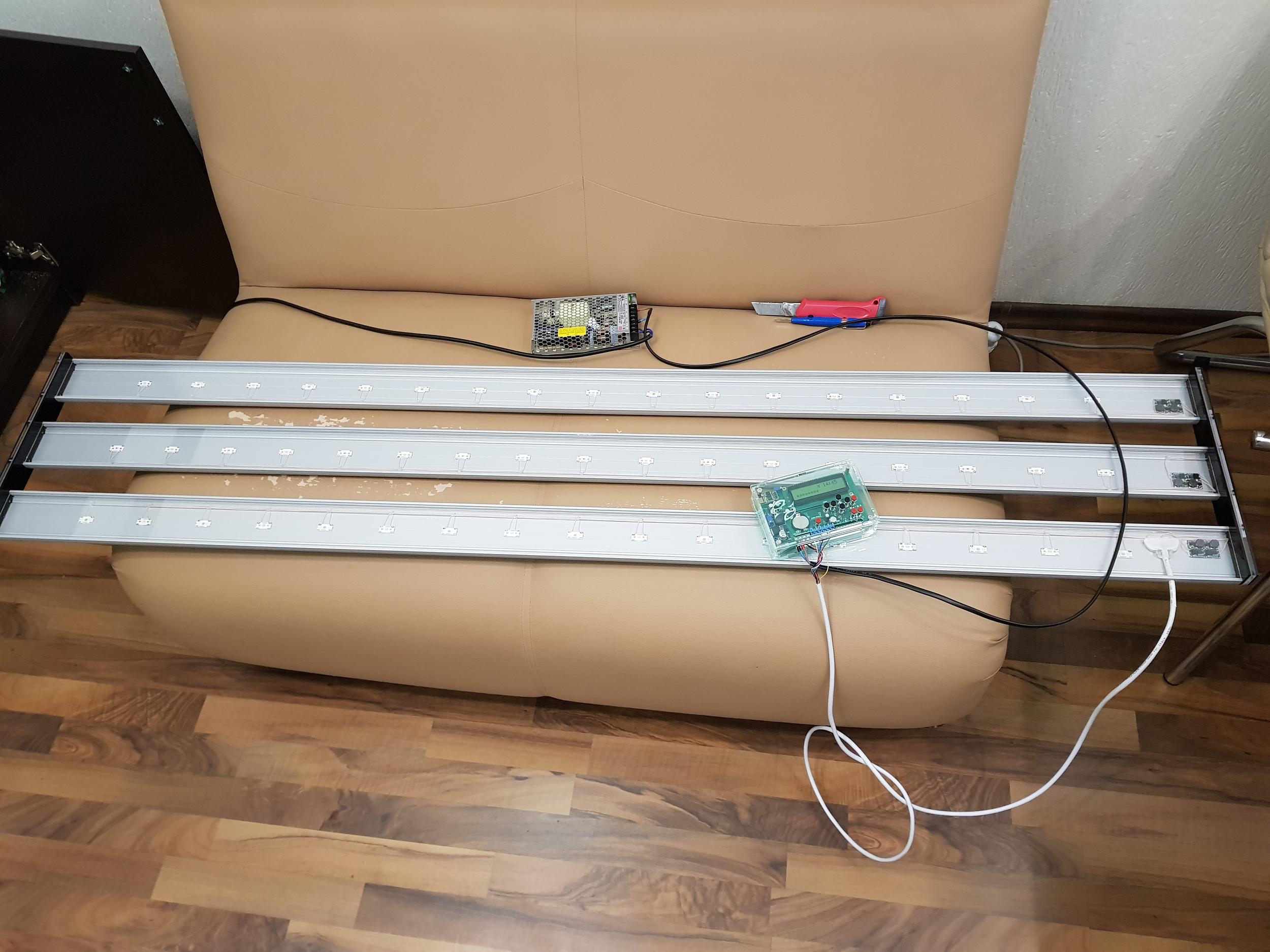 Светильник длиной 160 см, шириной 30 см, 6 каналов с раздельной регулировкой, рассвет-закат, таймер на работу вентилятора, Wi-Fi модуль.
