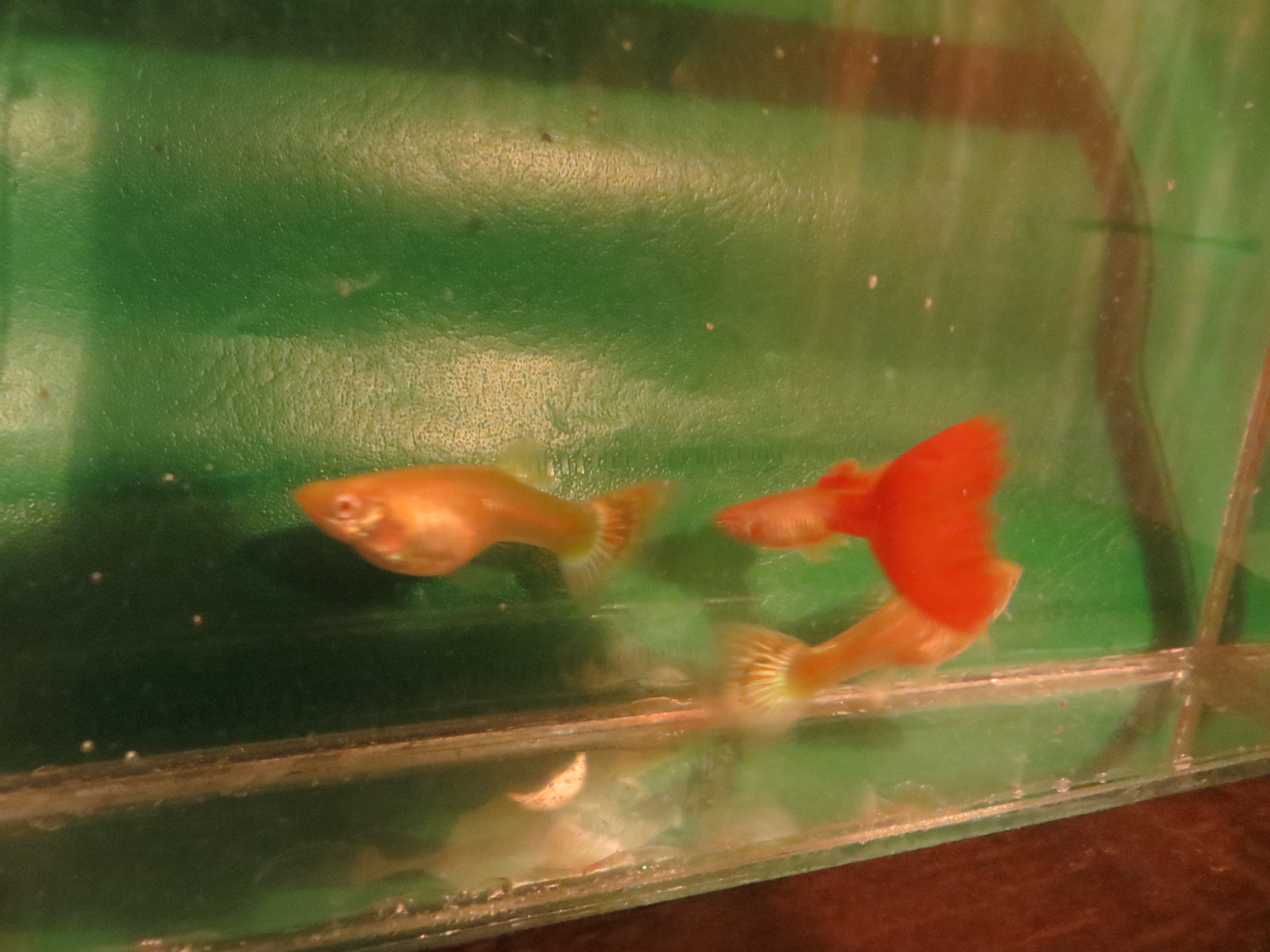 Веду отбор по самкам с голубыми хвостами , отбираю их в подростковом возрасте как только начинают окрашиваться , часть самок в этом возрасте есть с желтенькими хвостиками , я их выбраковываю и до взрослого состояния не выращиваю . Теоретически они как раз и должны быть краснохвостые или красно-голубохвостые .