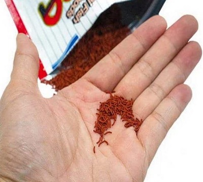 - Представлен в грануле в форме червя, которые рыбы обожают