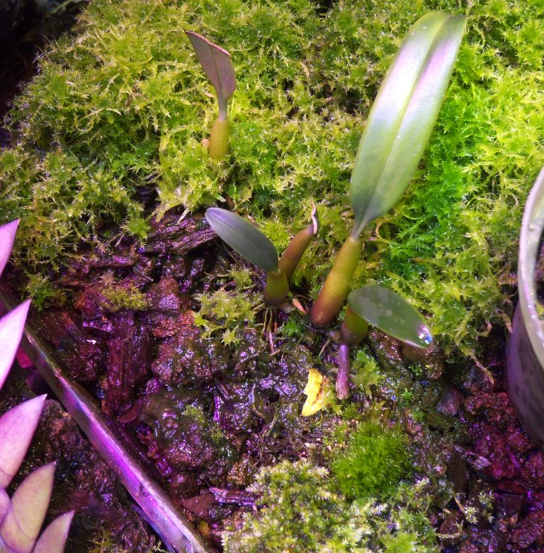 Вот Eria bulbophylloides и Bulbophyllum retusiusculum высажены в таком стиле ,оба растения пришли слабоватые, но уже дали по несколько ростов. Мох везде живой и прирастает.