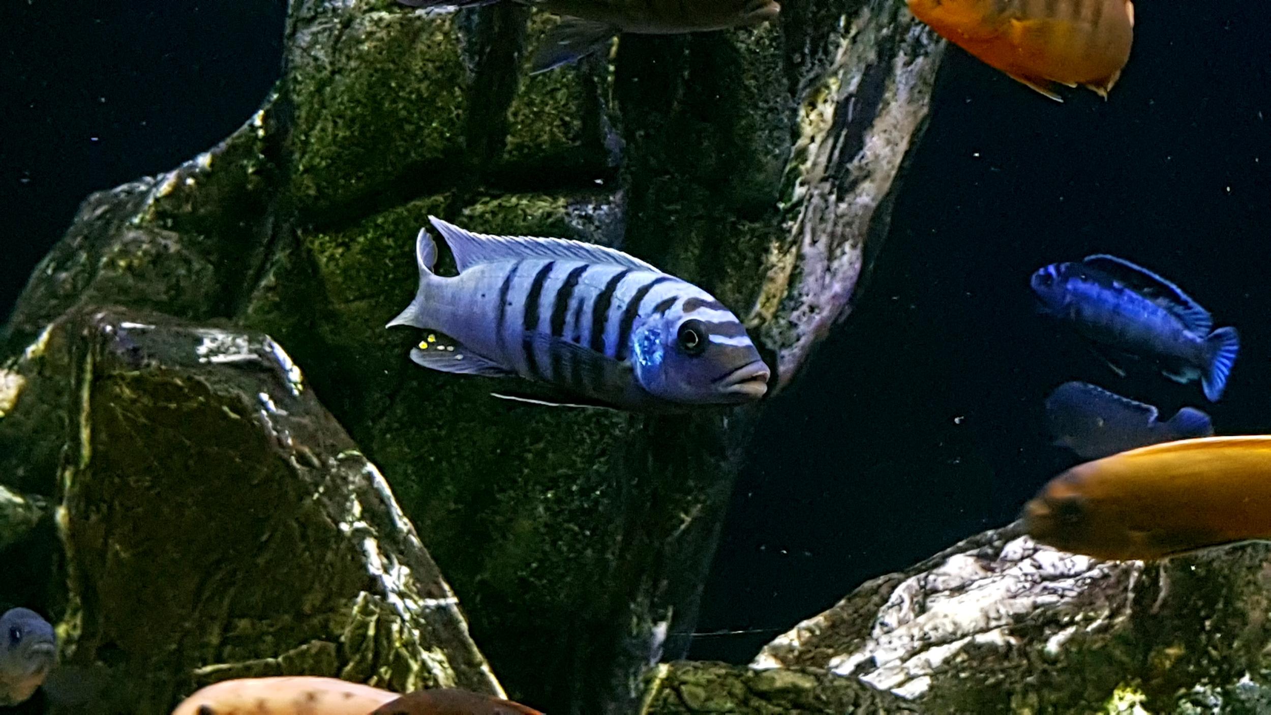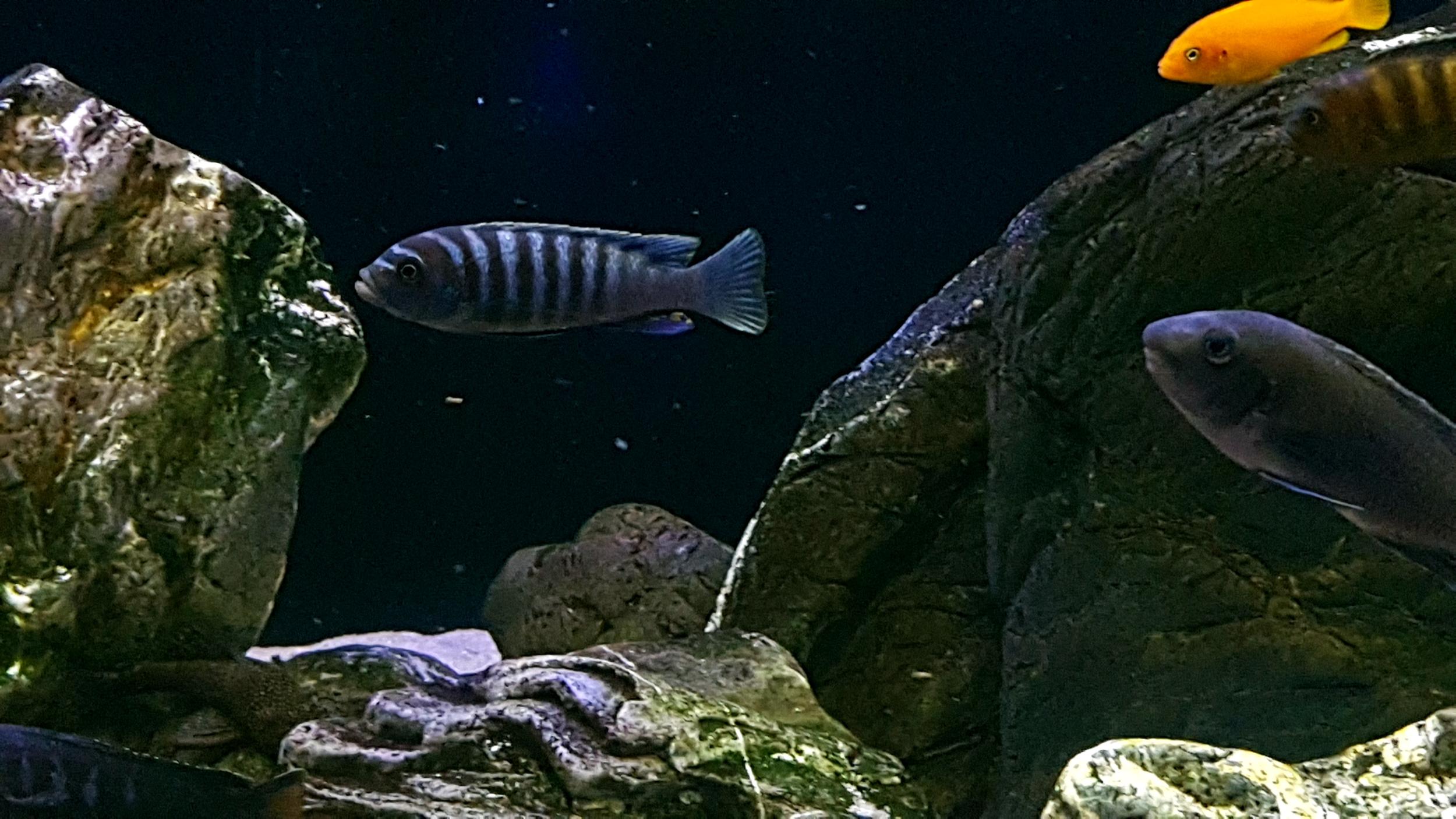 Немного расстроило что был обещан один размер, а приехали меньше (около 1.5 см),но ничего..вырастим) рыбка была акклиматизирована, запущена в аквариум с подростками. Пол часика старожилы погоняли малышей, потом успокоились. Что интересно, один (одна) из мембе дипов взял опеку над малышами и отгонял желающих сильно плотно *познакомиться* с ними. К вечеру в аквариуме уже была тишь да благодать (ну настолько как это может быть у малави)..все дружно похватали циклоп и на этой позитивной ноте волнительный день закончился. А поскольку вчера после апгрейда вернулся основной светильник, то аквариум полностью укомплектован и технически, и по населению.