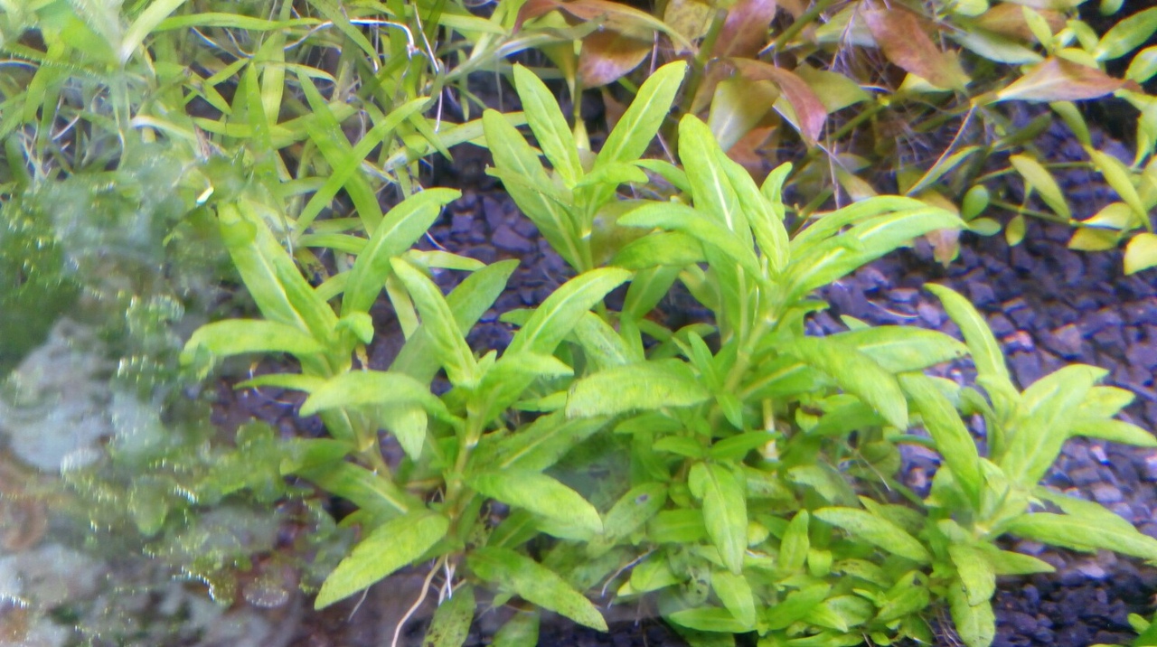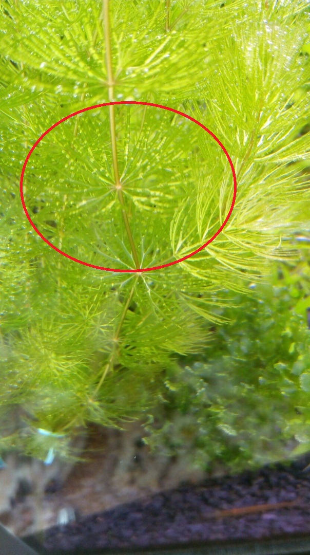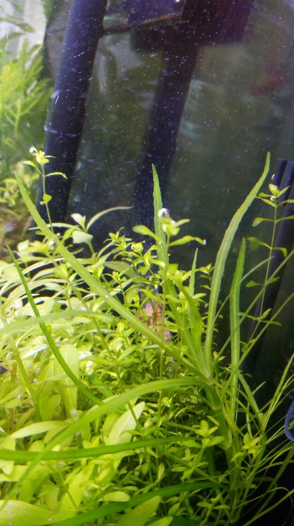 На людвигии после прополки на старых листья начали появляться дырочки, видно на предыдущих фото. На роголистнике к примеру на нижних стеблях видно как внутри как воздух ,а после того темнеет. чего нет у роголистника на самой верхушке. Еще на роголистнике заметна таже ситуация что и в роталле, молодой росток уменшается в размере. видно на фото.