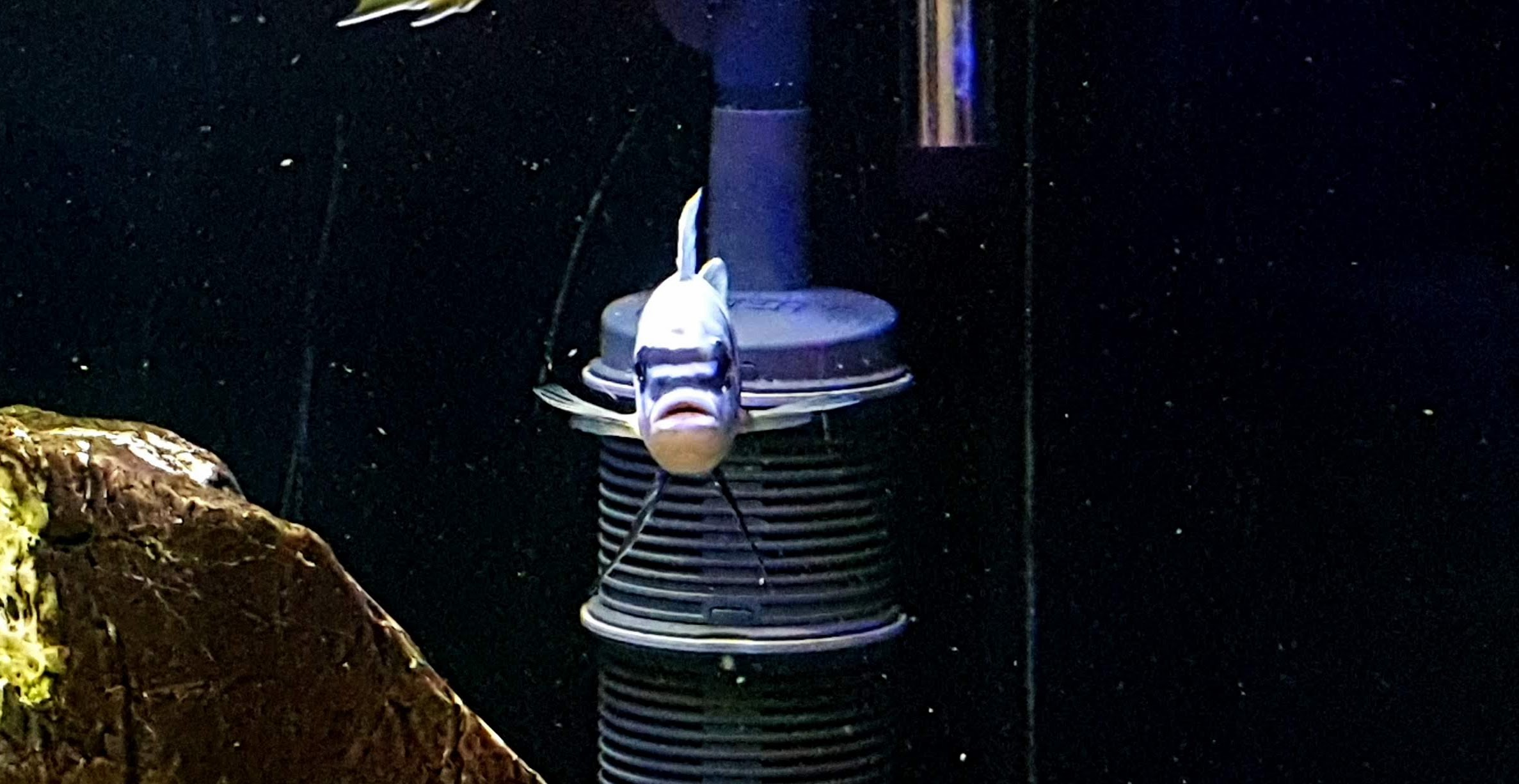 Естественно был извлечен из фильтра и отправлен в маленький аквариум.