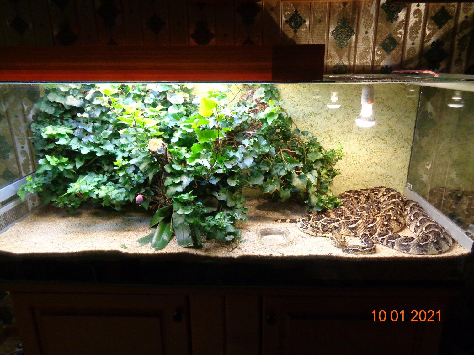 На сегодня моему террариуму с шумящей гадюкой 6 лет