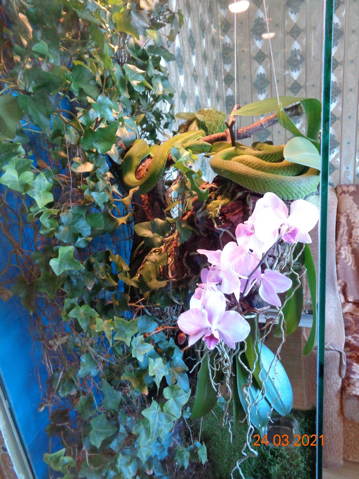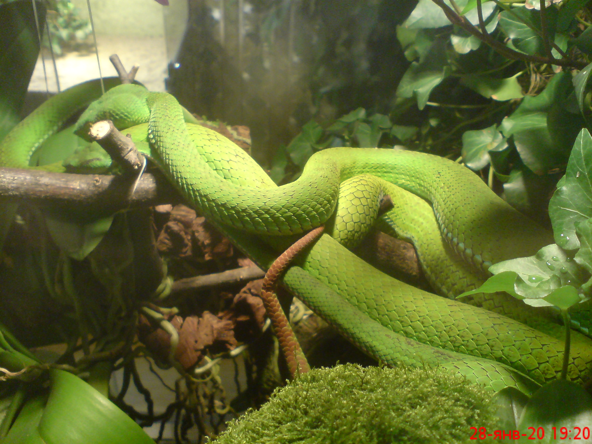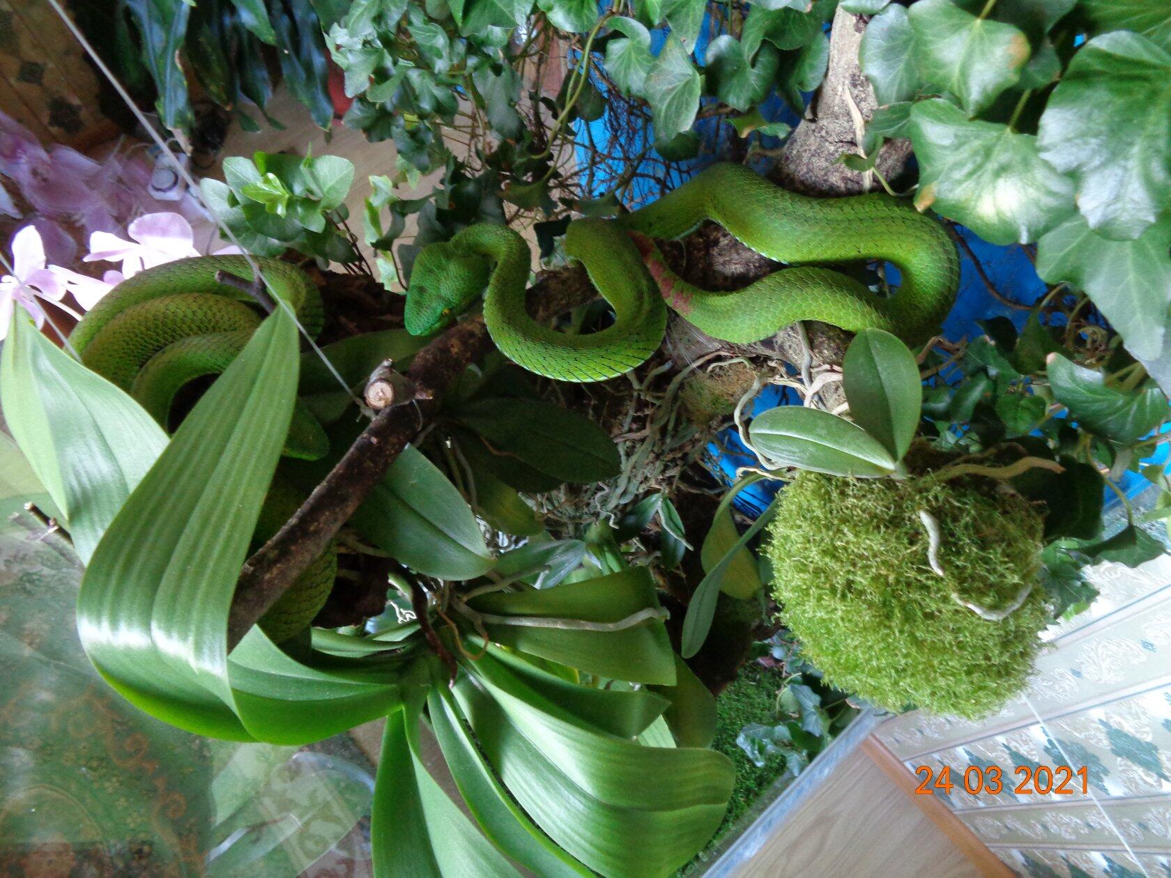 влажность поддерживается за счет опрыскивания дистиллированной водой дважды в день в 12 и 21 час. в 12 часов опрыскиваю и змей вечером только террариум. влажность находится на уровне 75-90%.