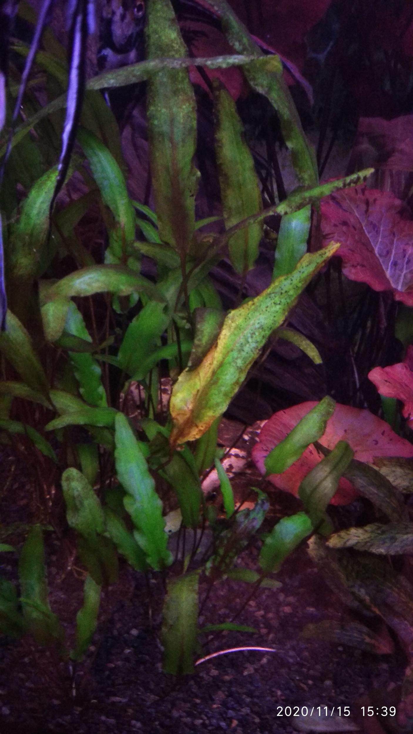 11. Проблема - Простенькая травка - криптокарина Вендта начала пропадать - некоторые листочки желтеют а некоторые просто отпадают и всплывают будучи внешне вполне нормальными. Раньше было все в порядке, единственно что посадил рядом анубиас да нимфея разрослась близко