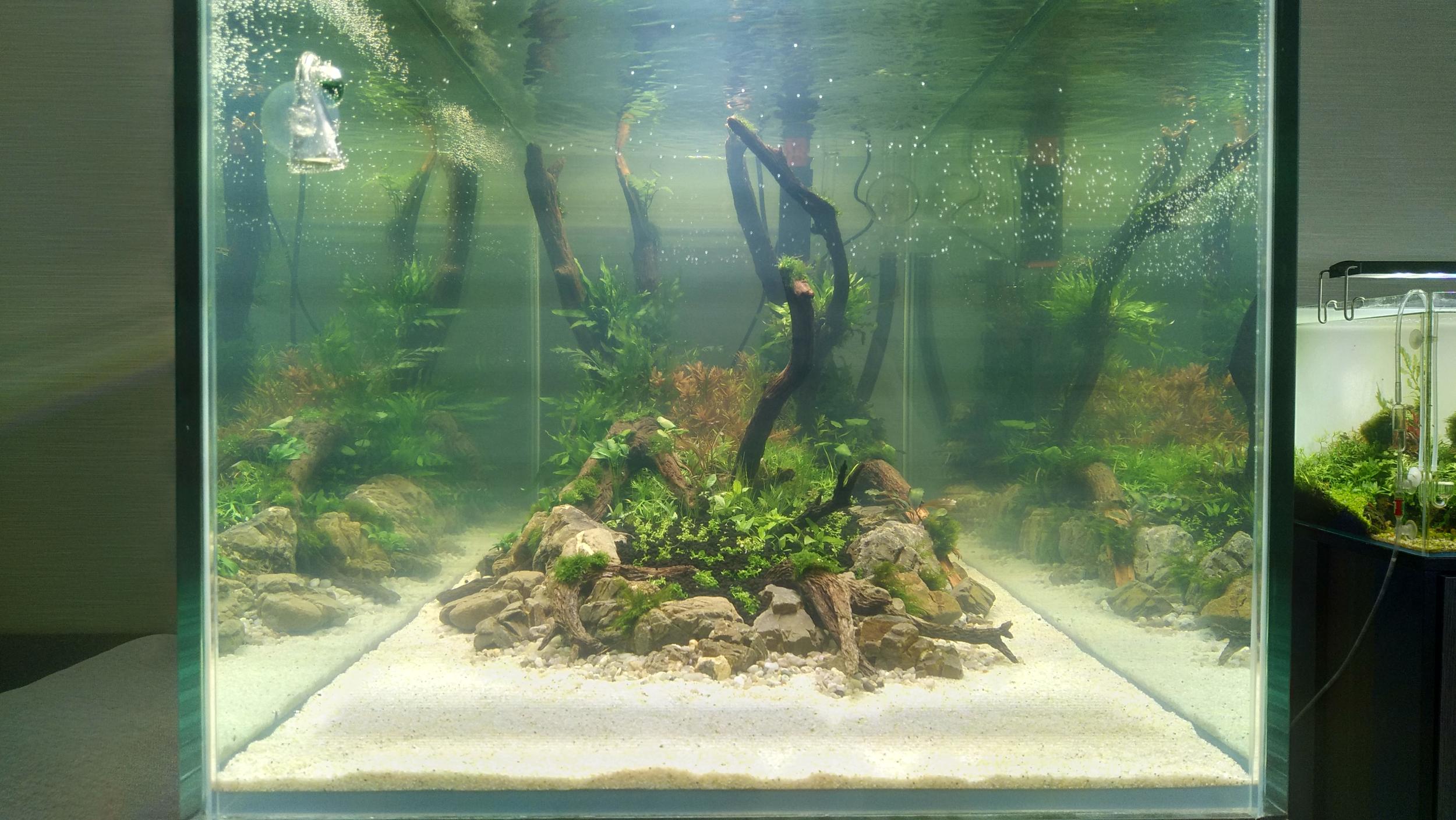 Всіх вітаю в новій темі. 05.11.20 запустився, тож вирішив створити тему. Нормальних фото створення хардскейпу, посадки рослин нема, тож їх викладати сюди не буду. Загалом процес оформлення харду зайняв майже цілий день і ще два вечора. Коряги сухі, клеїв їх до каміння фільтрами для самокруток і ціанокрилатним клеєм. Тримається добре, спливати наче не збираються.