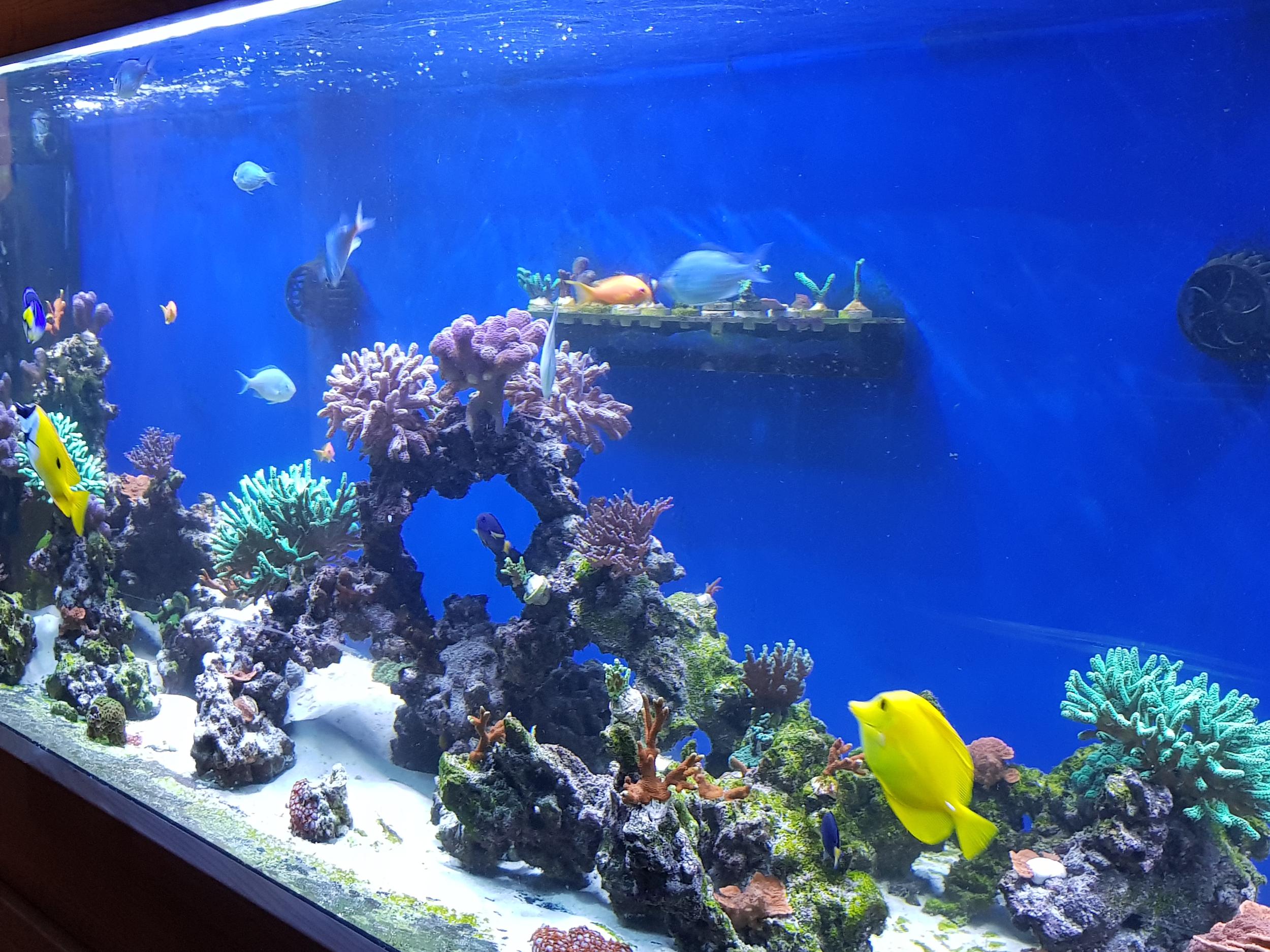 С морем мы вместе уже 7 лет, но только в етом году смог реализовать свою мечту - была создана панорама длинною в 4 метра! Запуск состоялся 15 августа 2020 года. Запускал и переселял все в спешке так как живность была перемещена во временный резервуар, что повлекло за собой очень обидные потери, но не будем о грустном.