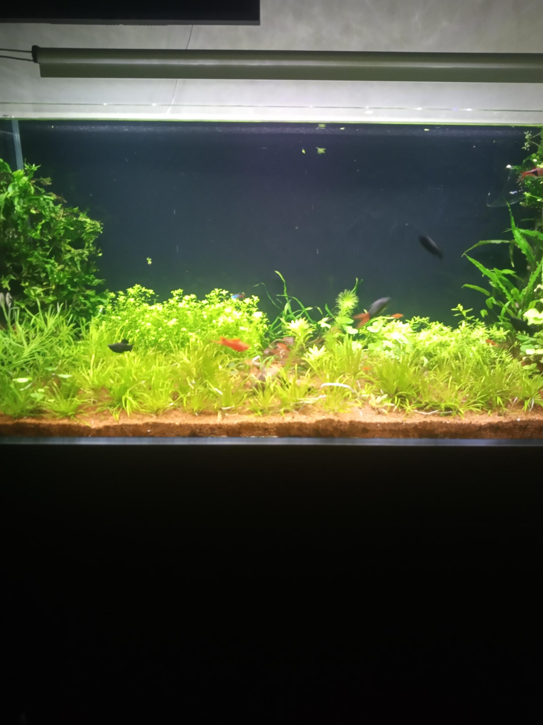 Плюс СО2 нужно полноценно тем более медленно растущая трава очень чуствительна к разгону.макро явно ниже предела видимости... и его явно не хватает..