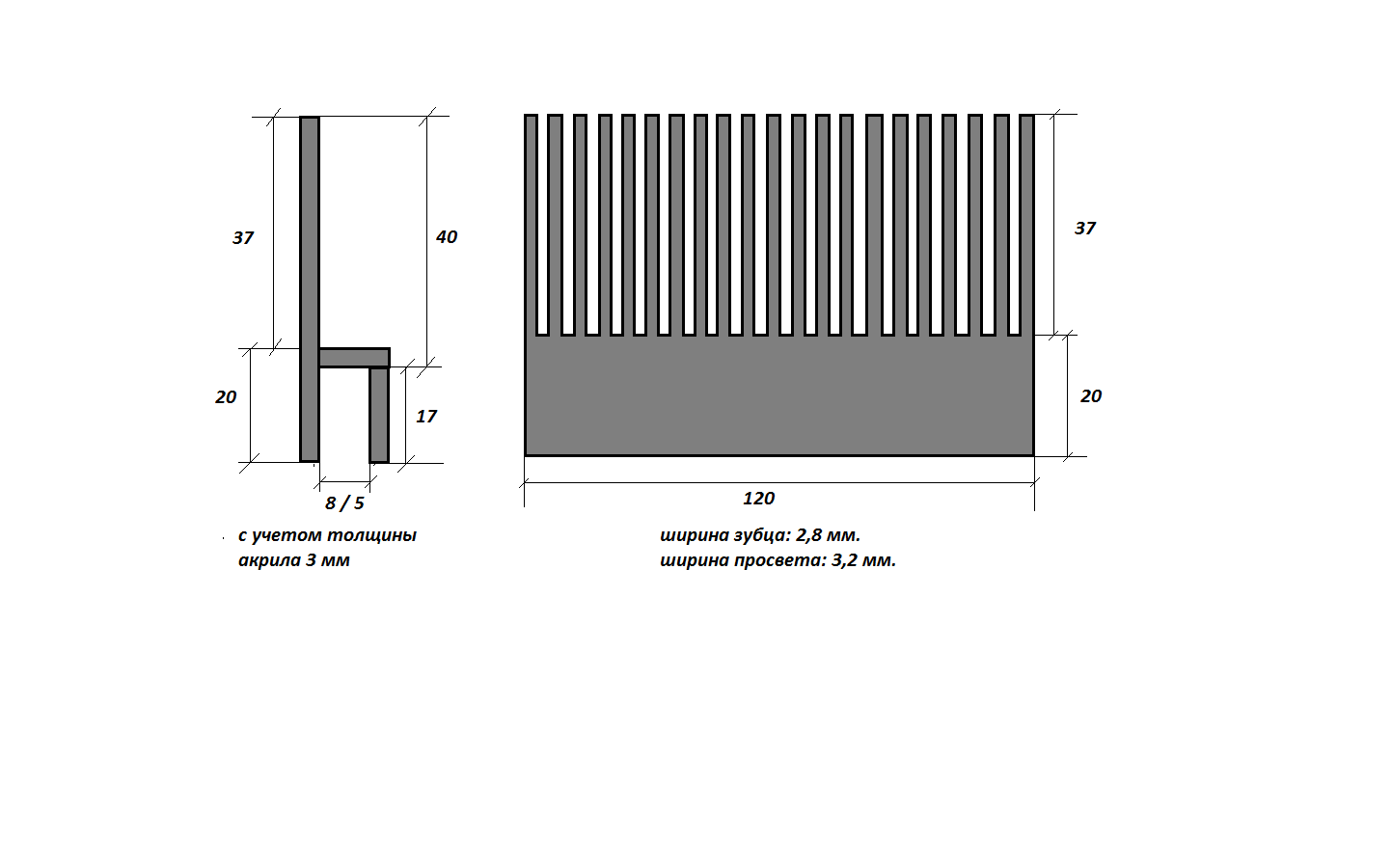 - материал цветной или прозрачный акрил толщиной 3 мм.