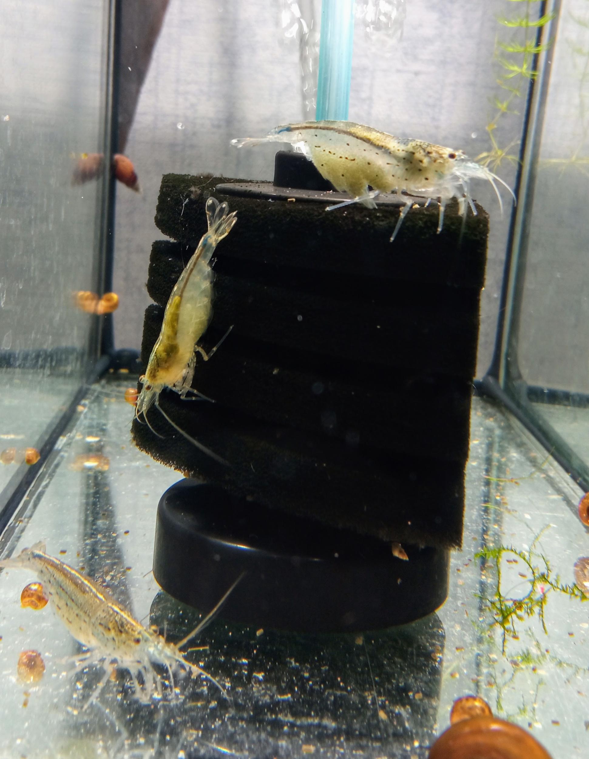 Креветка собственного разведения, не прихотлива к воде, отлично себя чувствует в обычной крановой воде. Хорошо подъедает водоросли.