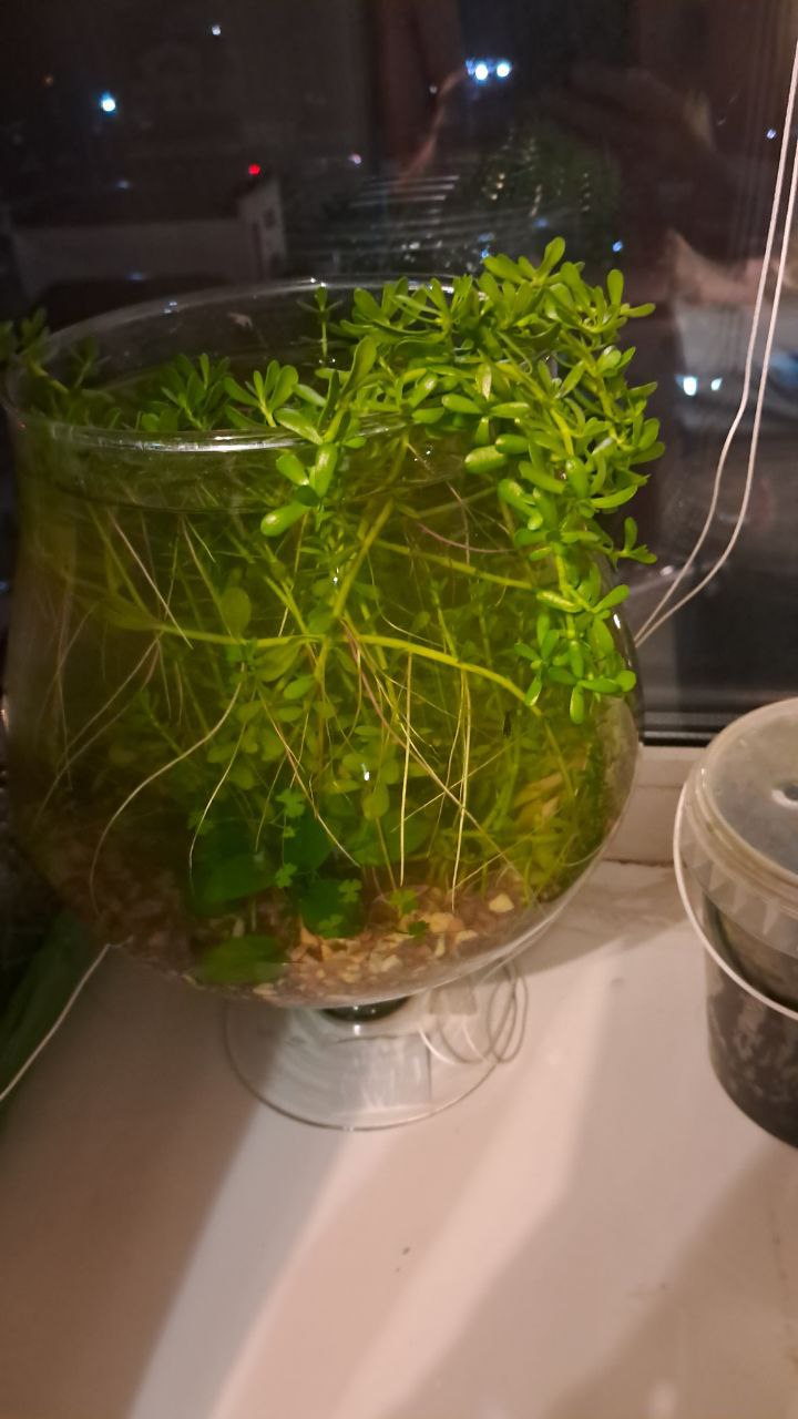 На фото креветочник на 6 литров и малявочник на 25, растения растут в земле. Красные растения растут красными, а не зеленеют! Мои аквариумы с землёй - на подоконниках с прямыми солнечными лучами.