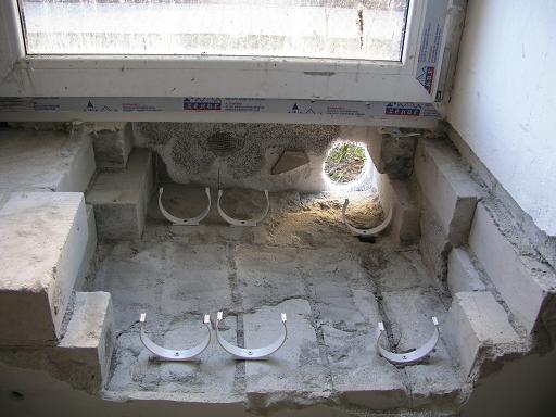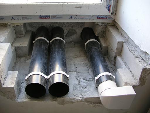 Застройщик халавно сделал подоконник, он 60см, так упор сделан был у окна в нескольких местах по кусочку пенопласта и задули пенкой немного у края, а 50 см в воздухе висело. А у меня на этом подоконнике весь строительный хлам лежал, так он прогнулся на всю глубину пустот, а это сантиметра 2. Пришлось все выдерать. Заодно решил под подоконником сделать воздуховод (воздуховоды) для приточного воздуха. Короче разобрал все, снес ряд кирпичей, закупил трубы для воздуховода.