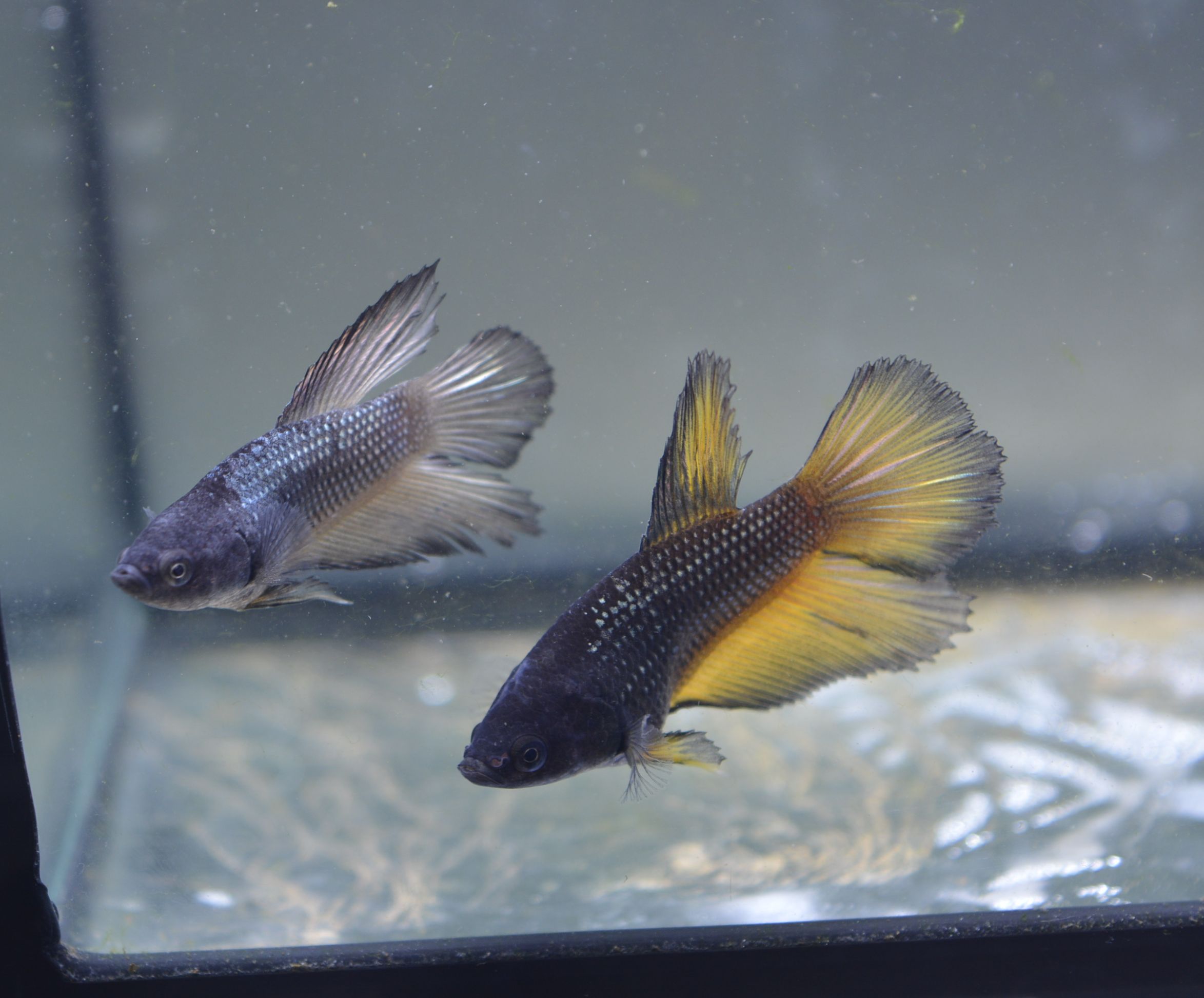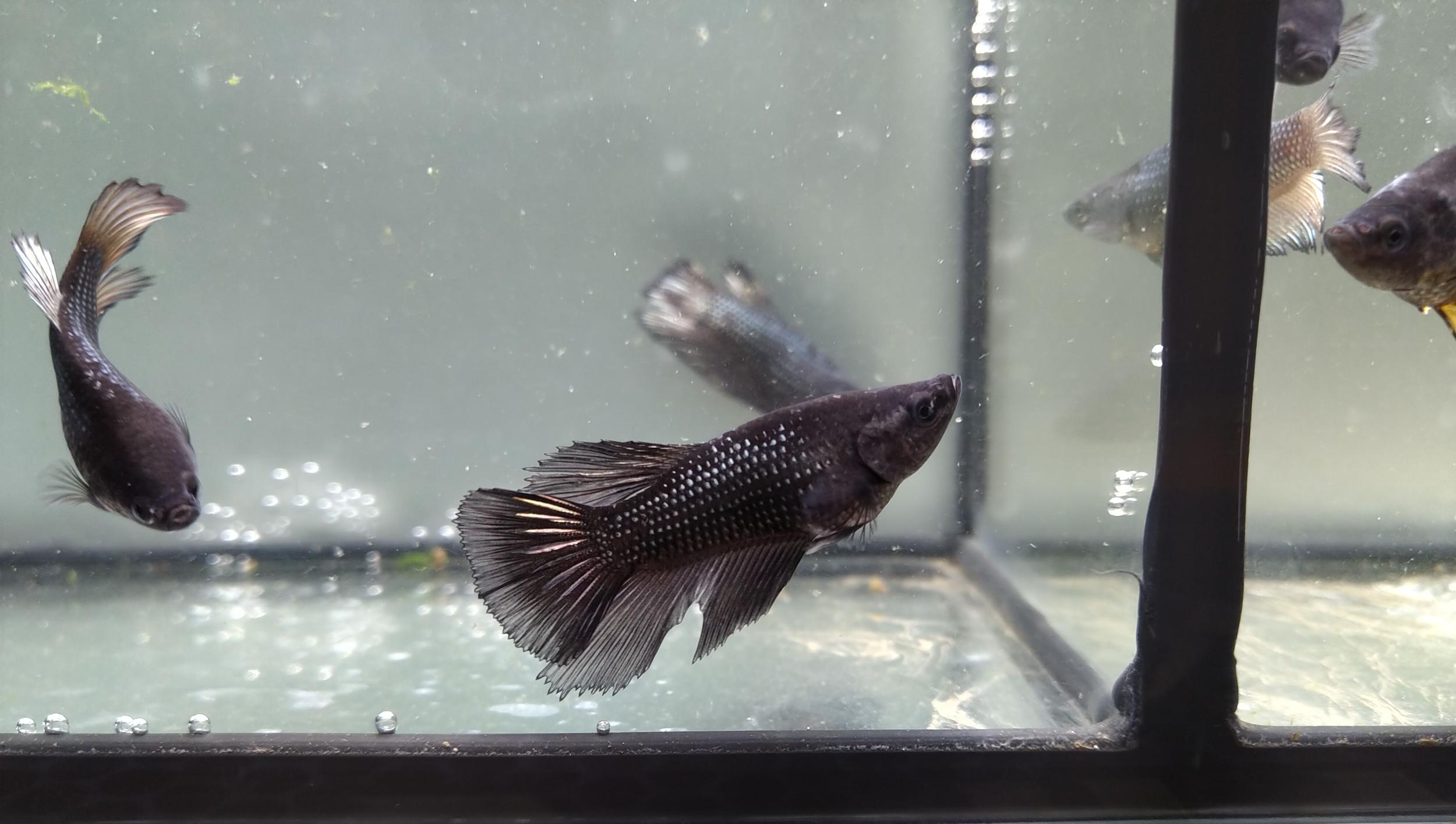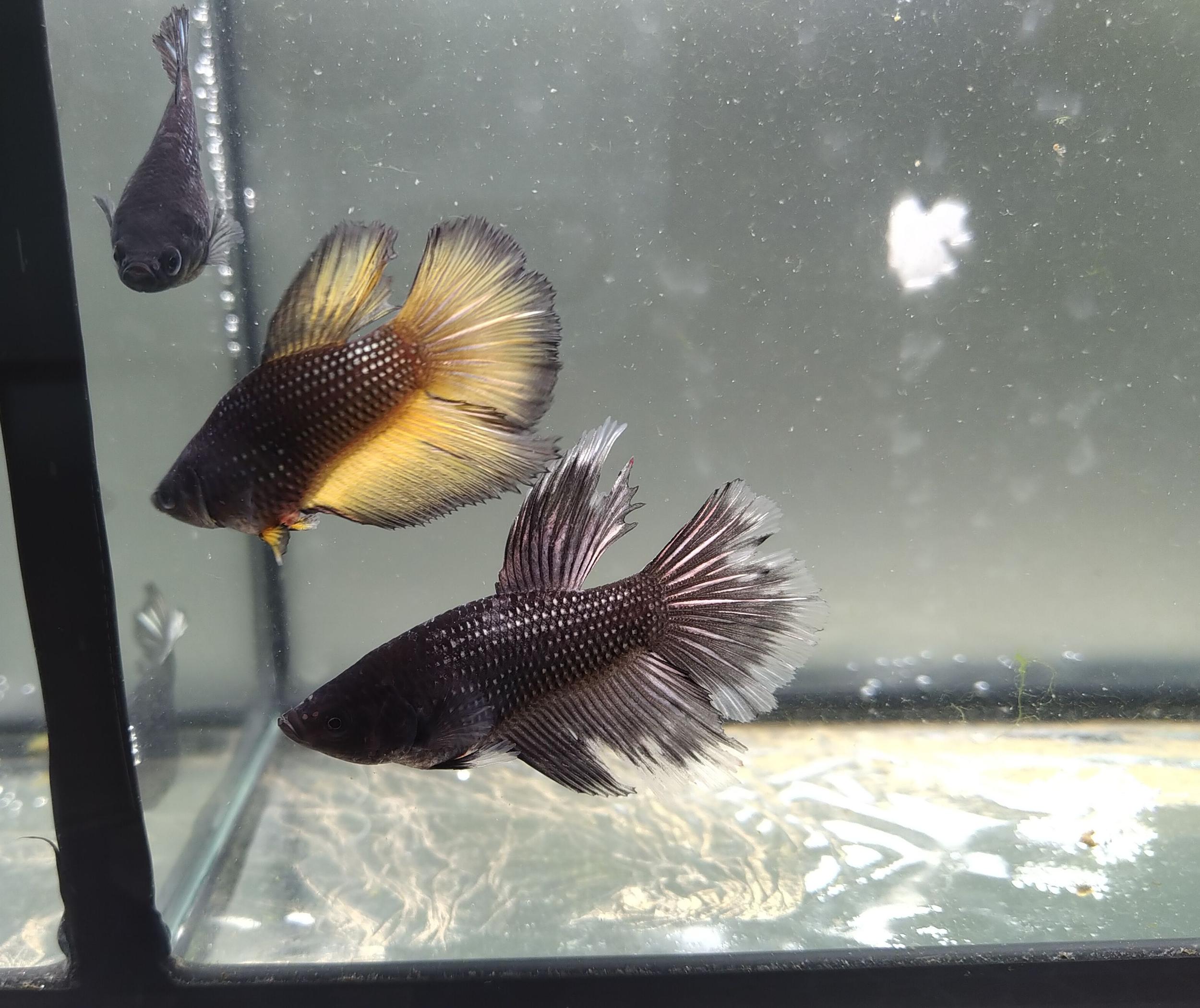 Перед этим попробывал обычных вуалевых отнерестить, успешно. Уже две недели мальку. Видно, уже что синие. Кабаны зоровые.. После разведения скалярий аж непривычно, быстро растут.