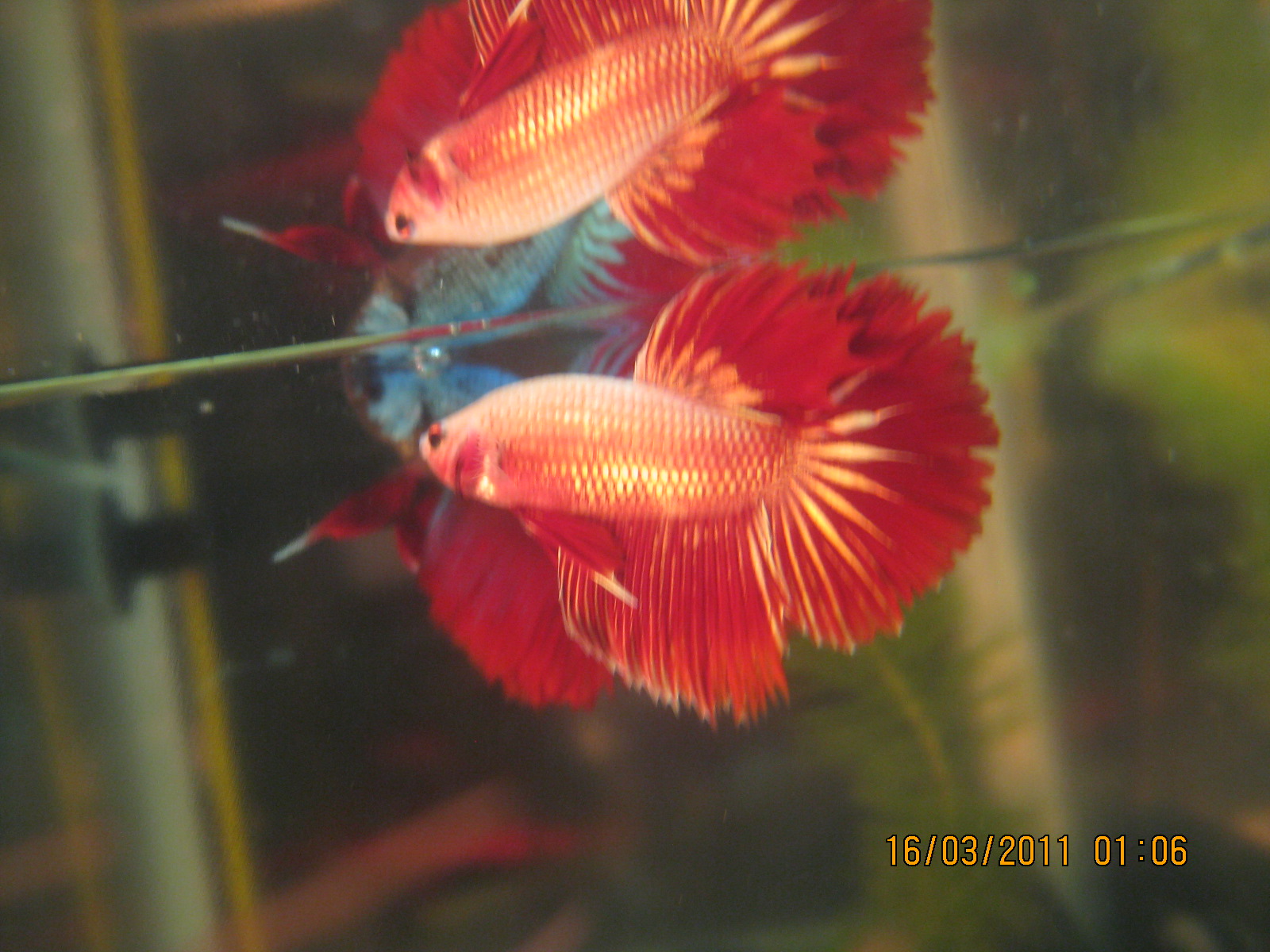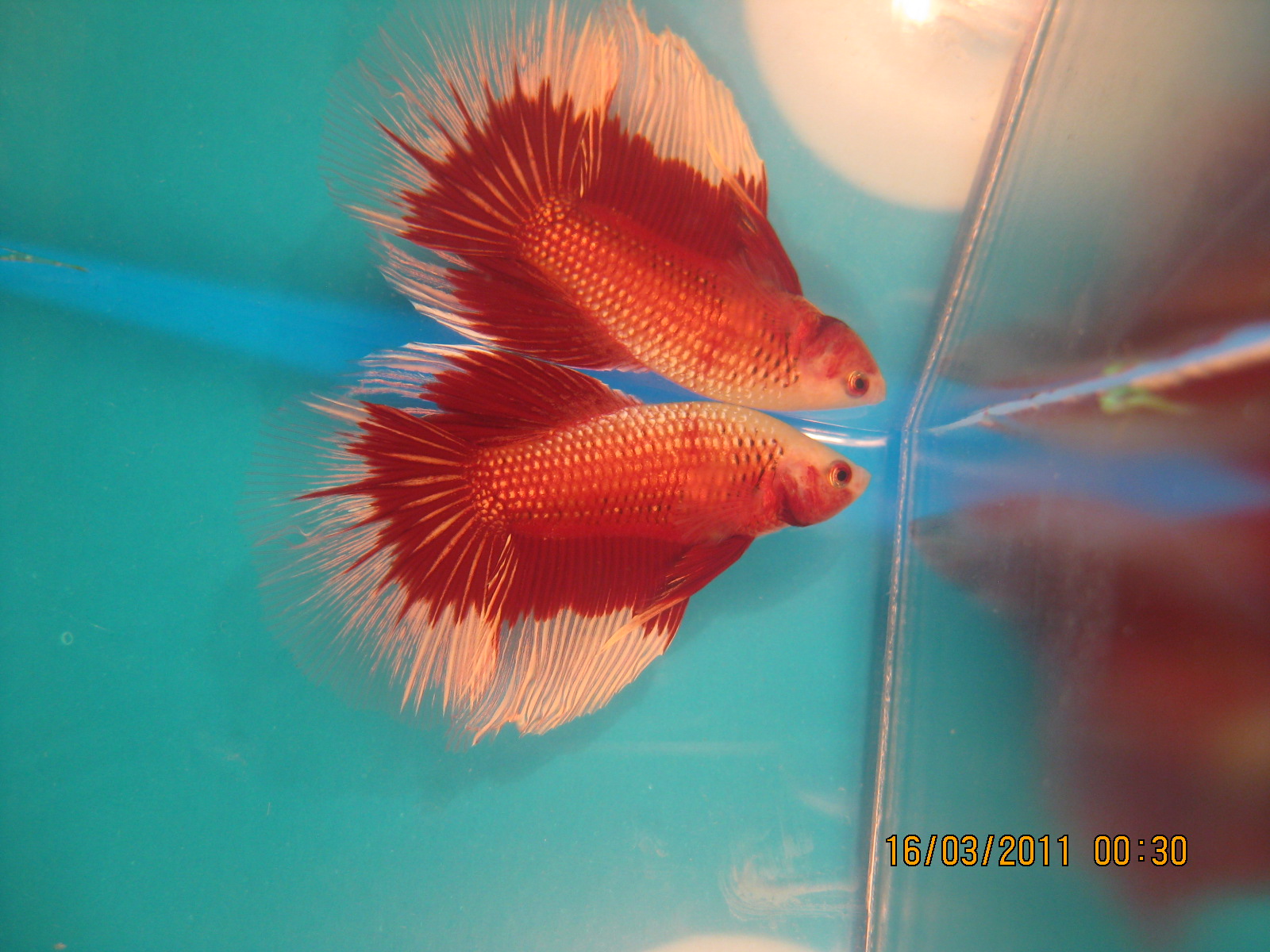 Всем привет, вот тоже хочу похвастатся своими петушками... Рыбкой эта была интерестна мне давно но долгое время не занимался т овремя то ещё чтото...раньше знал что только вуалевые петушок сушествует... но на сегоднешний момент есть как ивуалевые так и Дабл Тэйлы , Корона... поскольку в Одессе туго с самками есть только самцы разные... и обычные самочки у меня... пытаюсь вывести самок дабл тэйлов и короны...есть около 5ти состоявшихся пар петушков вот например месяц назад был отсажен вот этот дабл тэил... из- всего помёта выжила 2 малька... но уже видно что есть один дабл