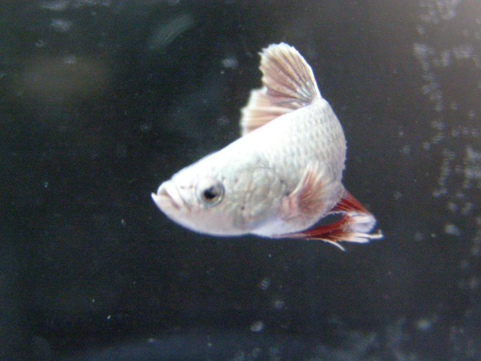 Самка, его сестра. Хочу ее к отцу посадить. У нее лучи в хвосте стали делиться. Со скольки месяцев самки половозрелыми становятся? Только вот думаю, что отец DT, дочь носитель DT, не получатся ли мальки с отклонениями.