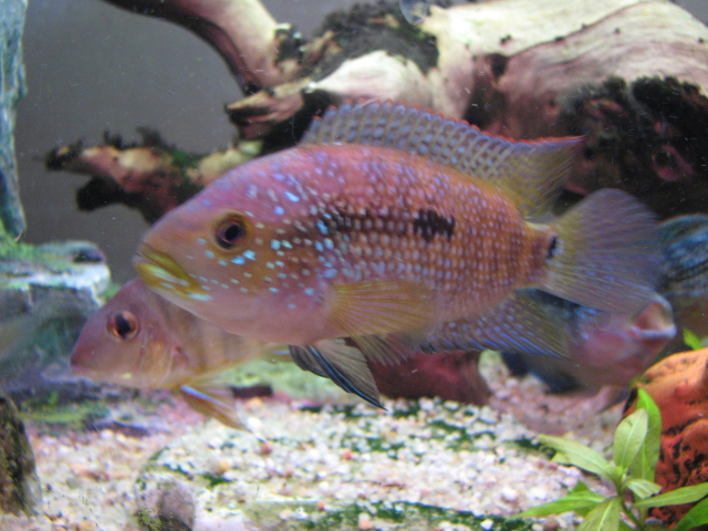 Однак є приколи. При підготовці до нересту - 2 САМЦІ готують територію, а потім домінант з самкою доводять місце до пуття ("голубі" однако)  , потім зразу нерест. В той же час 2 самки ховаються від самців - вони є доволі агресивні до іншої риби. Правда трагічних випадків поки що не було.
