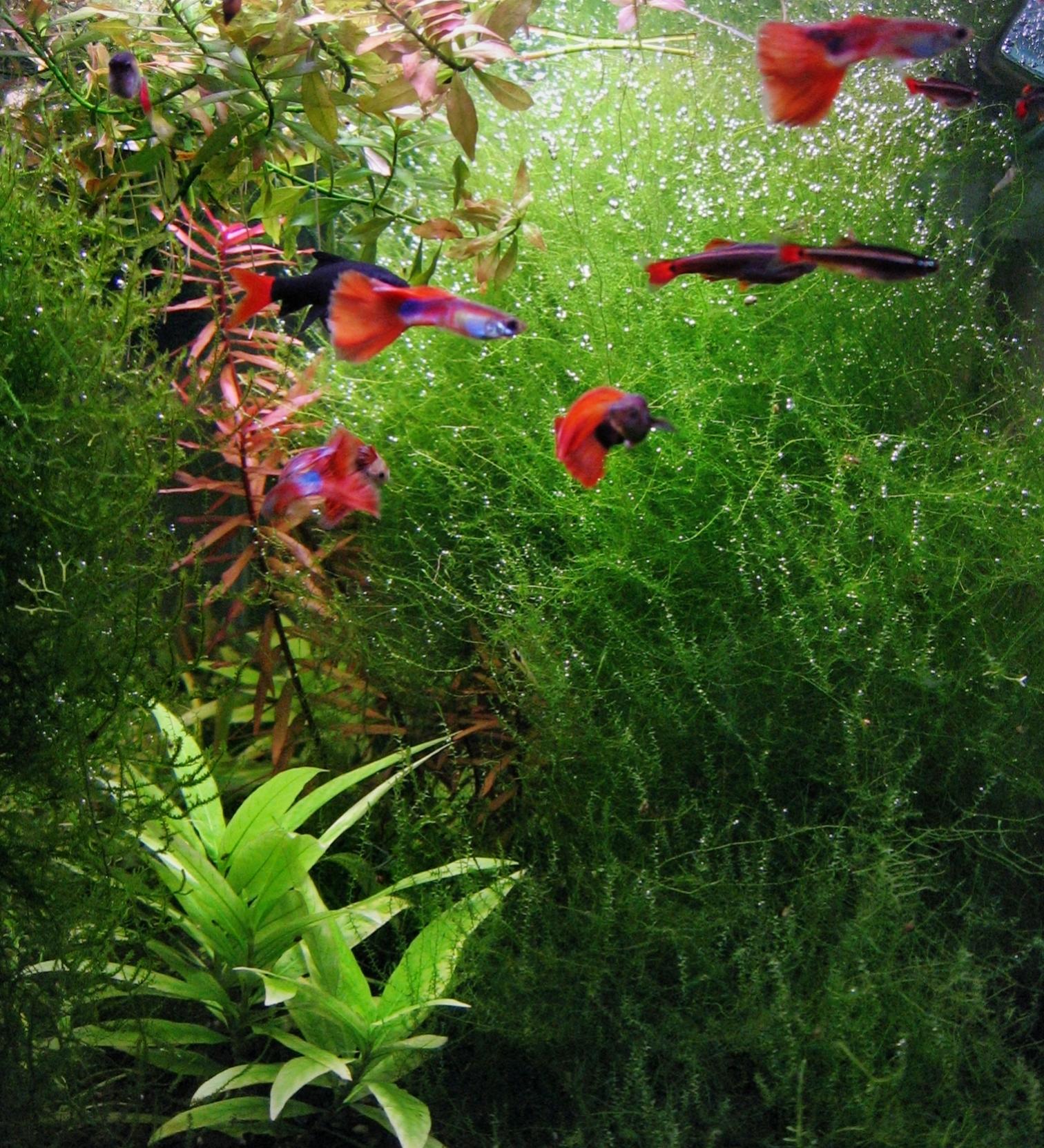 Этим мхом удачно декорируются коряги и другие декоративные элементы в аквариуме.