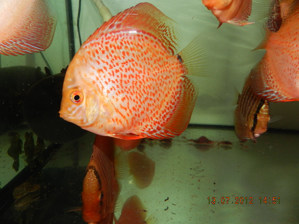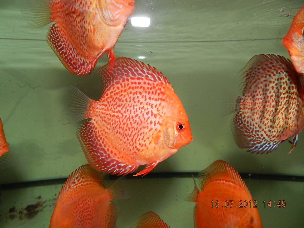 В секретных аквариумах Одесских любителей дискусов,продолжается кропотливая работа по улучшению бело-красных рыб,Одесский пиджен(Скорпион)+Крабовая палочка(Джулиан)=Слава Одессе.