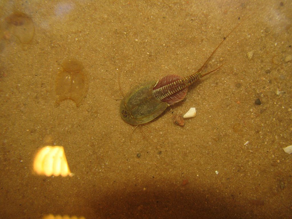 На выставке, среди экзотов, есть щитни! В аквариуме можно наблюдать 9 штук Triops longicaudatus. Вылупились 7 апреля и на свой 8й день рождения, они достигают размера в 1см.