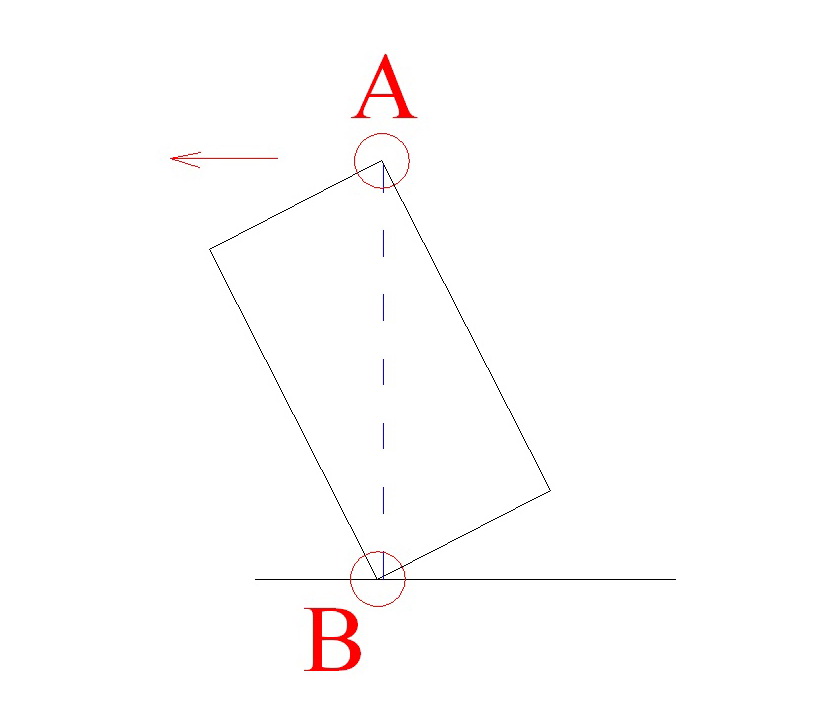 В таком случае, нет никаких причин для беспокойства. Да и перевернуть его не так просто. На рисунке- вид аквариума с боку (торца). Для того, чтоб опрокинуть акву, нужно вывести угол А за пределы угла В, тогда он точно опрокинется. Не забывайте вес аквариума с водой. Вот с незафиксированной тумбой- конструкция более шаткая.