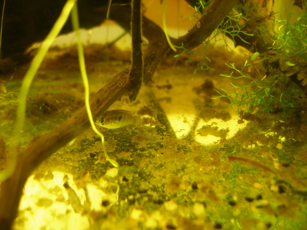 вы думаете это все???... Нет..., через несколько дней был подсажен самый мелкий (слабый) малек дорсика на разведку что к чему  ... и исчез с глаз долой, вроде и прятаться особо негде но обнаружить его я уже не смог...