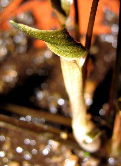 Цветение Cryptocoryne wendtii var. wendtii цветок почему то полностью не раскрывается... хотя читал где то что многие криптокорины открывают цветок ночью.В нутри цветок красный с белым.