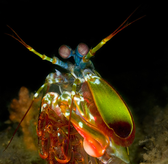 Стас похож на первого (Рак богомол) но с синими усами , может этот что на фото 2 (креветка богомол), Тот что на второй фотке вырастает до 5-7 см. Доставать как первого так и второго не рекомендуют без резиновых перчаток , Вред пока не знаю какой приносит , видел видео как Креветка богомол схватила рыбу размером в см 4 , А я то думаю где мой Асцелярис четвертый делся)))), но это предполажение