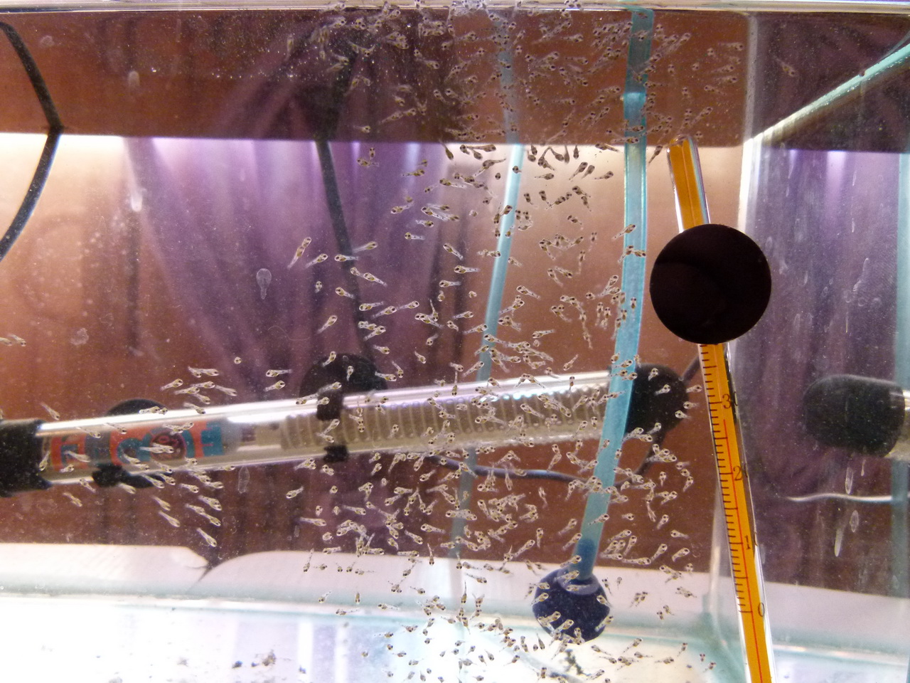 так вот, скорость развития икра-личинка-всплыл малек, при температурах 26 и, например, 30 градусов (специально ставил эксперименты) - разная. и может довольно сильно отличаться. в общем то, так и должно быть, как и частота нерестов.