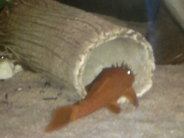 Неделю назад положил в аквариум трубки, самец после их исследования налился красным цветом, жаль что нету хорошей техники для фото. У меня живут с начала октября 2009, брал 3-4,5 см., сейчас самец очень вырос, где-то 9-10 см., самки 6-7 см. Одна точно с икрой, видно брюхо широкое и полное. Они вообще когда созревают, если им примерно 7-8 месяцев? Сильного интереса к трубкам не проявляют, иногда вижу что сидят.