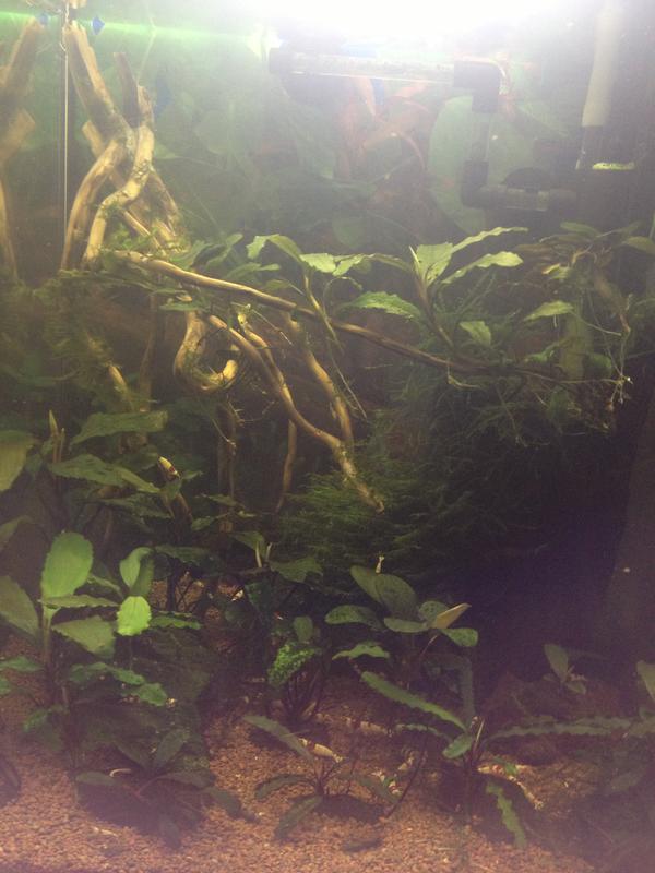 Как то так:Было так  стало так  Обьем 30л -свет:1 ватт/литр,10 часов(енергосберегалка),СО2,без УДО.Живность:Петушок,водорослеед,коридорас,креветк и.Вода-водопровод.