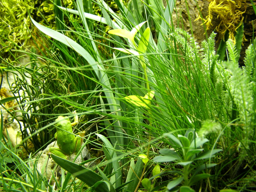 Я тоже хотел там лягушек озерных держать, хотябы маленьких, а то там мокриц развелось полно, но там водоем 33Х33 всего, а жерлянку боюсь держать, вдруг медянка попьет воды и отравится  Чесночница и жаба будут копать землю и растения повредят.
