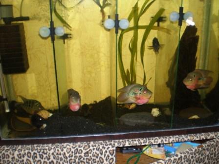 устроили такие бои!как быть? раньше сидели в одном аквасе 350 л,но было их малехо больше,сейчас 4 пары в 230 литрах ,но стали намного красивее,быстрее шишка стала расти , и цвет невероятный  приобрели !