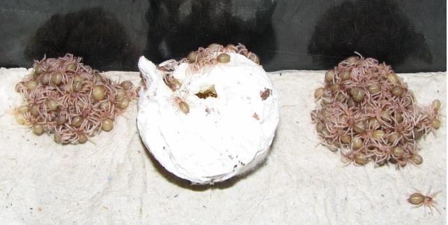 Самка в такие моменты перетаскивала кокон в более влажные участки гнезда, хотя кокон и был прикреплен к стенкам.