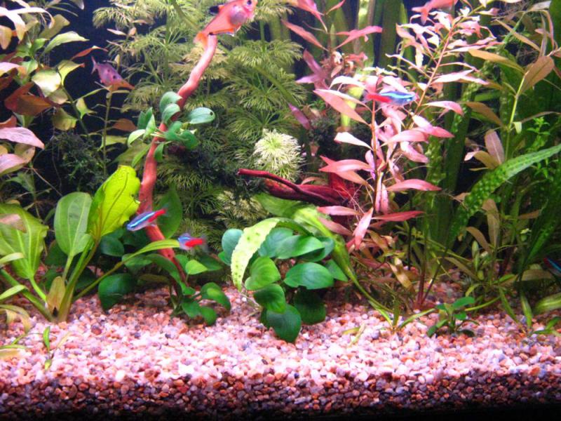 Аквариум запущен в мае 2010г. ДШВ 140х40х60см. Грунт кварц, обогреватели 150+200W Atman, Внешний фильтр Jebo 829, Свет 5 х 36Вт Pila 765